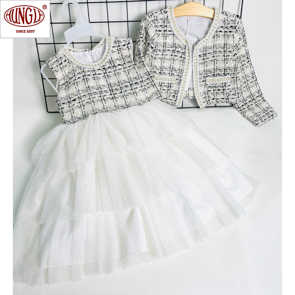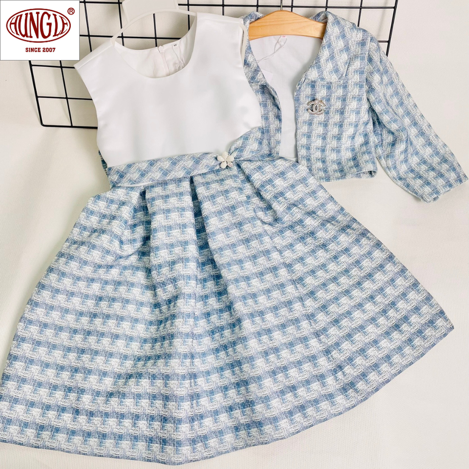 Venta al por mayor colección de otoño de moda transpirable estilo europeo vestidos hasta la rodilla para niñas