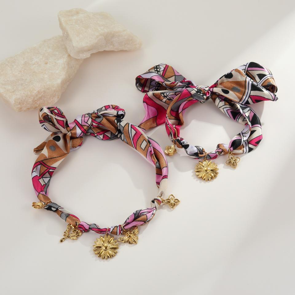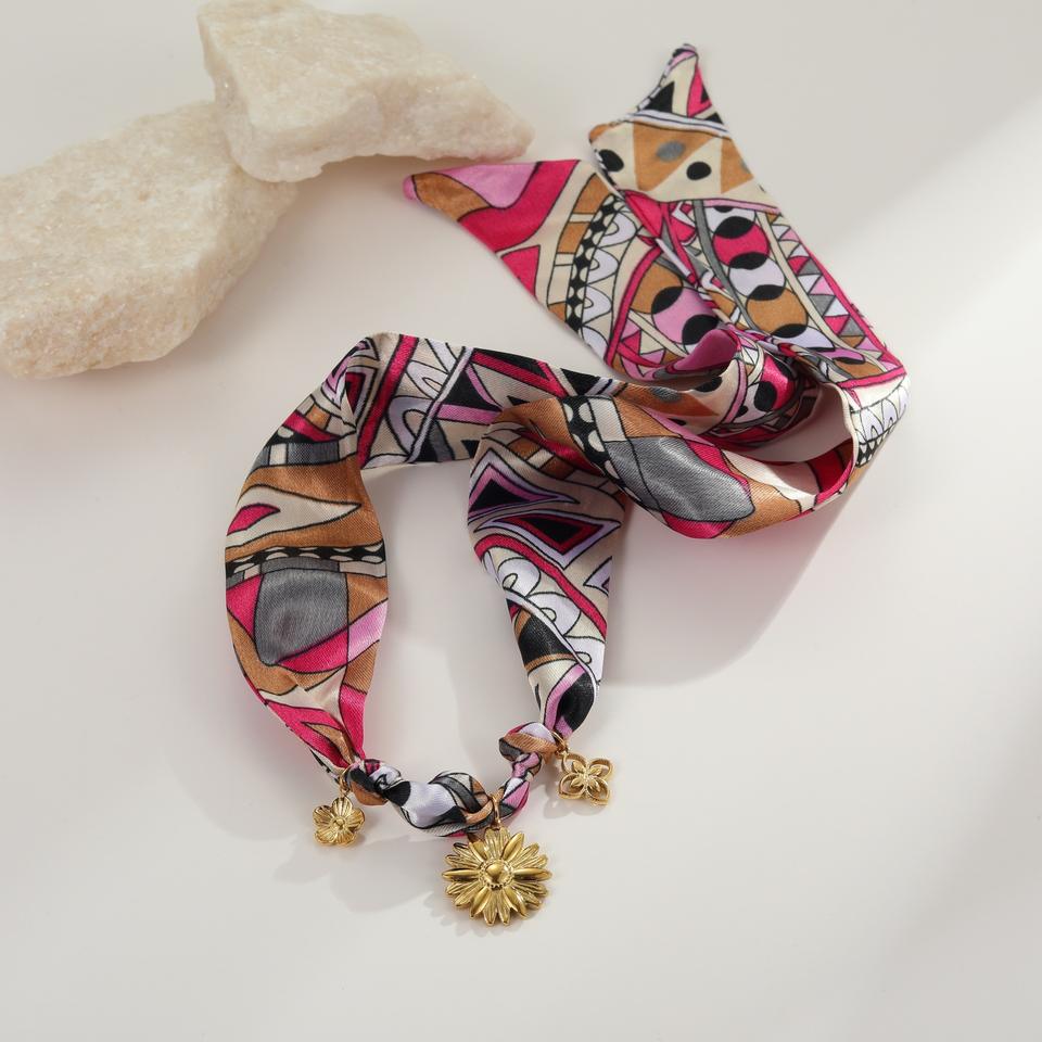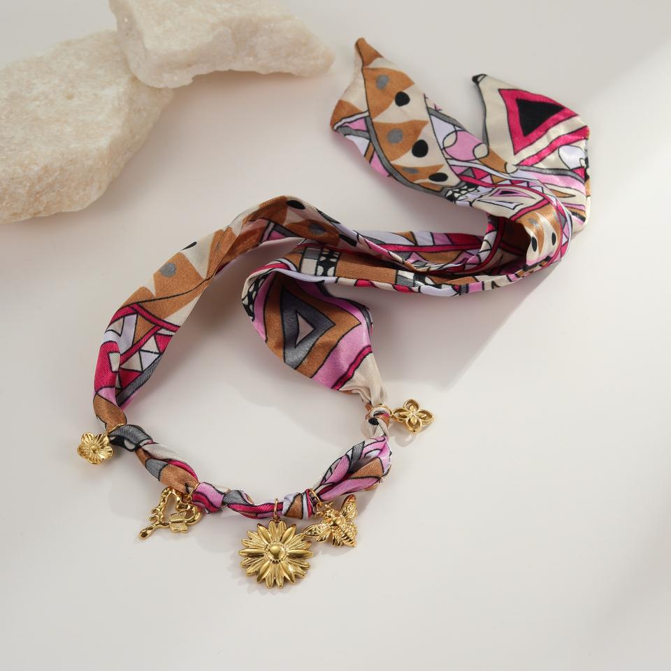 Venta al por mayor Otoño Invierno Rosa seda bufandas collar cadena flor colgante Acero inoxidable collares joyería conjunto