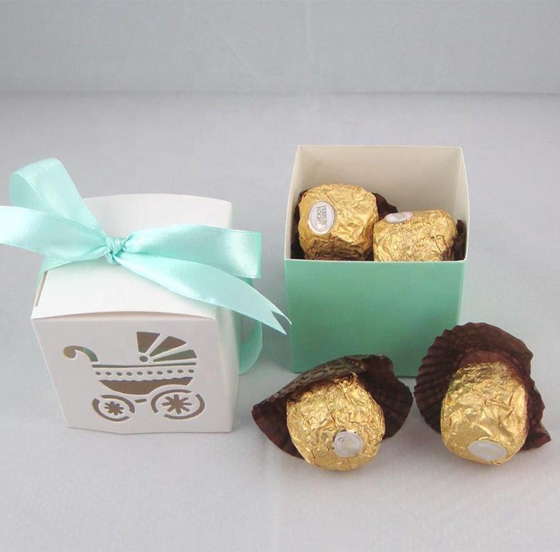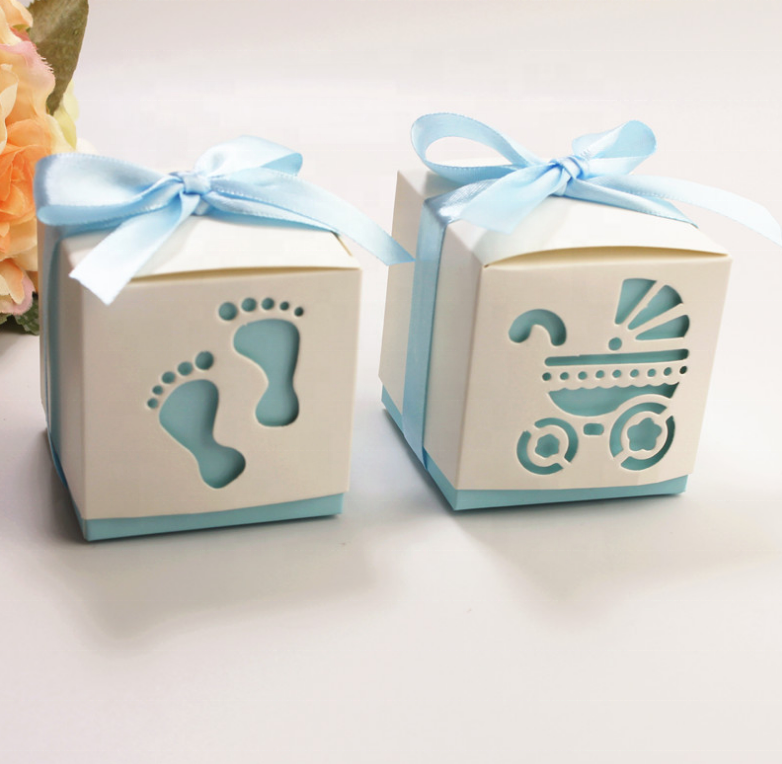 Venta al por mayor huellas de bebé Cinta Azul dulce caja de dulces para regalar Paquete de chocolate bautismo fiesta Bautizo