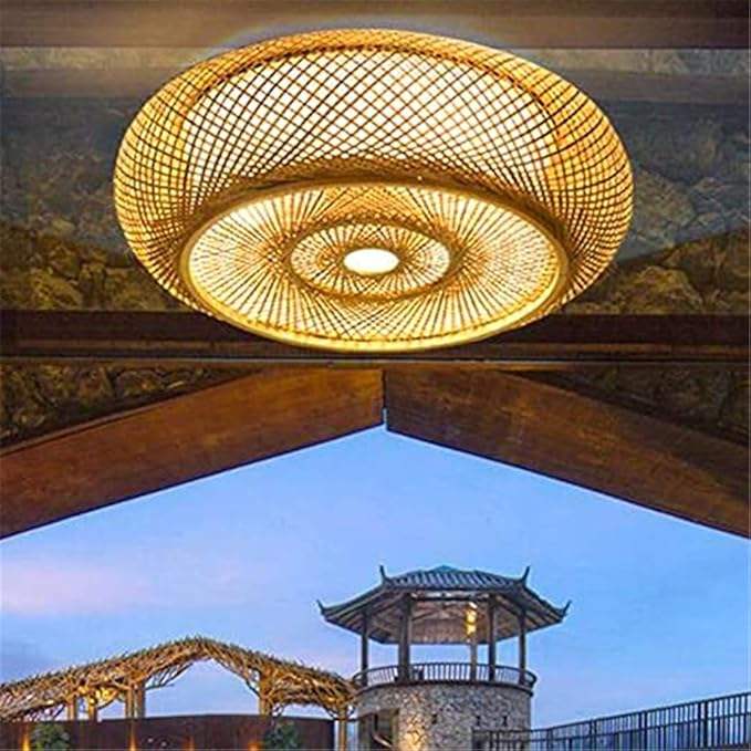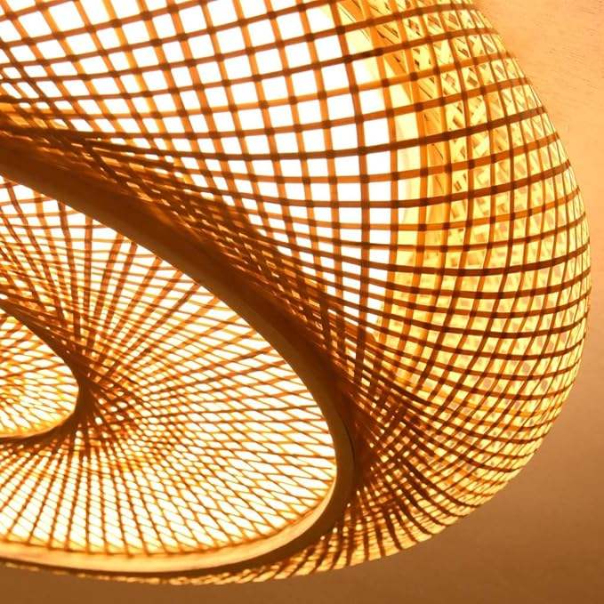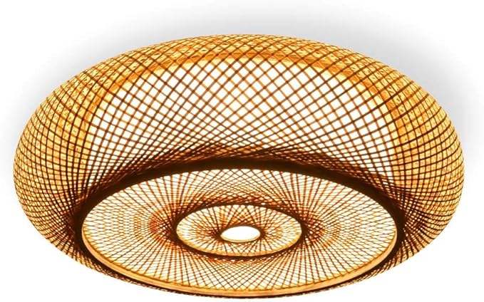 Lámpara de Techo de Bambú y Ratán al por Mayor, Lámpara Colgante Redonda Tejida a Mano, Pantalla de Iluminación LED para Comedor y Dormitorio, Decoración OEM ODM