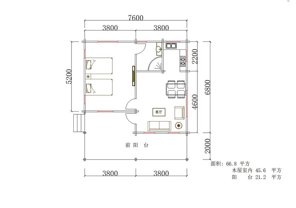 Cabaña de Madera Prefabricada al por Mayor, Casa de Madera Personalizada, Cabaña para Vacaciones, Casa Pequeña de Dos Dormitorios con Sala de Estar Familiar