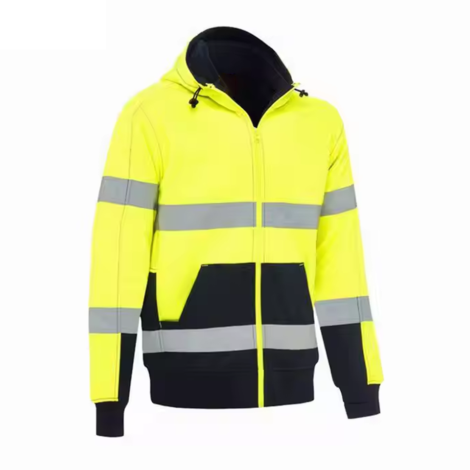 Venta al por mayor mejor fluorescente amarillo negro color construcción y al aire libre seguridad ropa de trabajo sudaderas con capucha venta en Pakistán