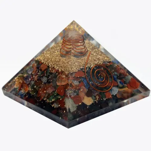 Pirámide de energía de orgón de múltiples piedras preciosas hechas a mano, cristal curativo de 7 Chakras con bobina de cobre para Reiki Feng Shui y decoración del hogar