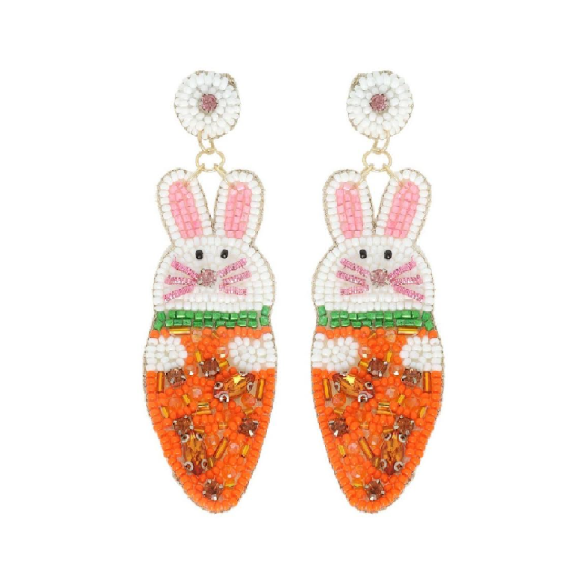 Pendientes de cuentas hechos a mano de conejito de zanahoria de Pascua blanco de la mejor calidad al por mayor Premium hermosa atractiva FIESTA DE ACERO INOXIDABLE