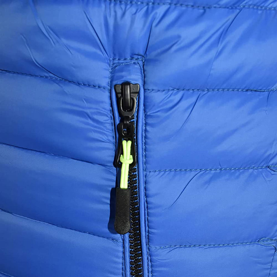 Chaquetas acolchadas de lona sin mangas con cuello alto y bolsillos con cremallera bordados y retazos personalizados superventas al por mayor