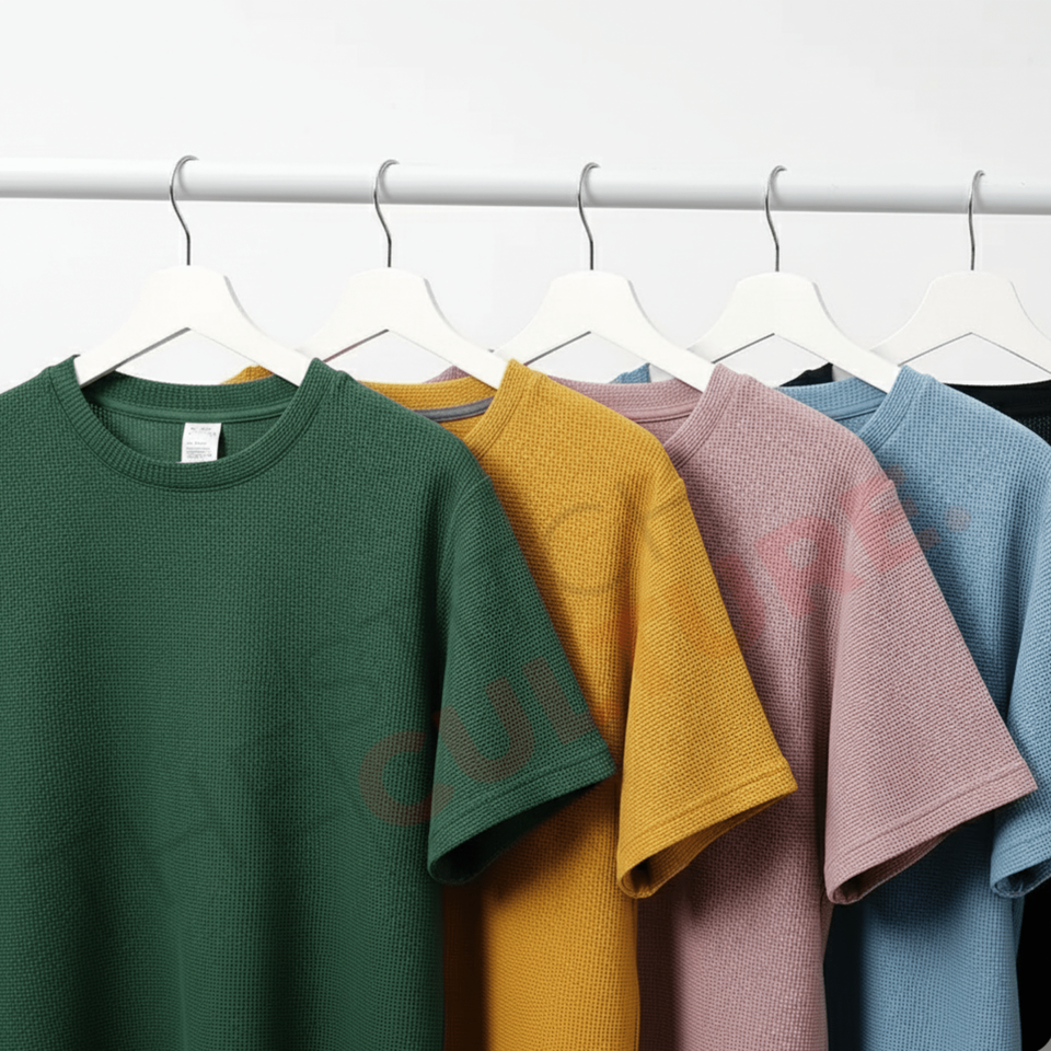 Camiseta de Algodón de Tela Waffle Extra Grande de 240 GSM, Negra, Lisa, Personalizable, de Alta Calidad, al por Mayor