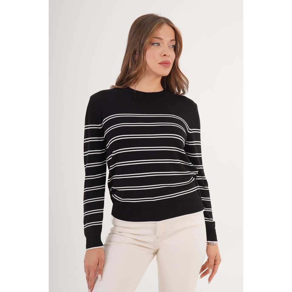 Suéter de Punto a Rayas con Cuello Redondo Negro al por Mayor, Cárdigan de Moda Estilo Coreano Premium, Delgado para Otoño e Invierno