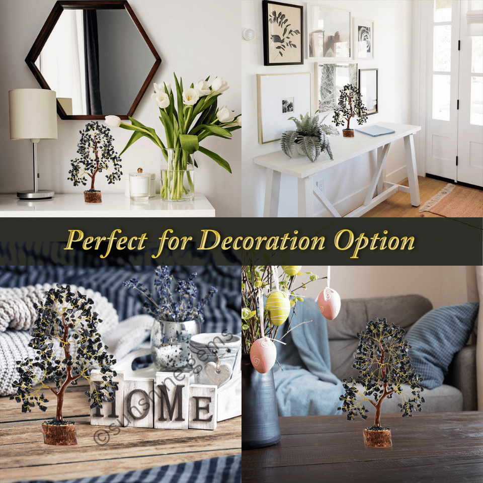 Product name:Black Tourmaline Crystal Tree (Golden Wire 300 Chips)