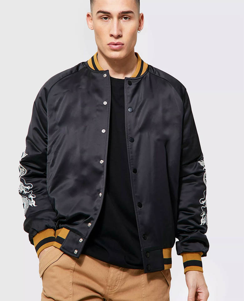Keywords:Black Satin Polyester Varsity Bomber Jackets