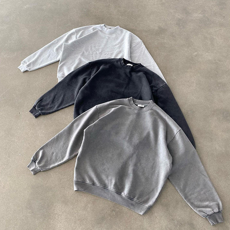 Venta al por mayor en blanco liso Vintage cuello redondo logotipo personalizado cuello redondo de gran tamaño desgastado lavado ácido personalizado DTG impreso sudadera