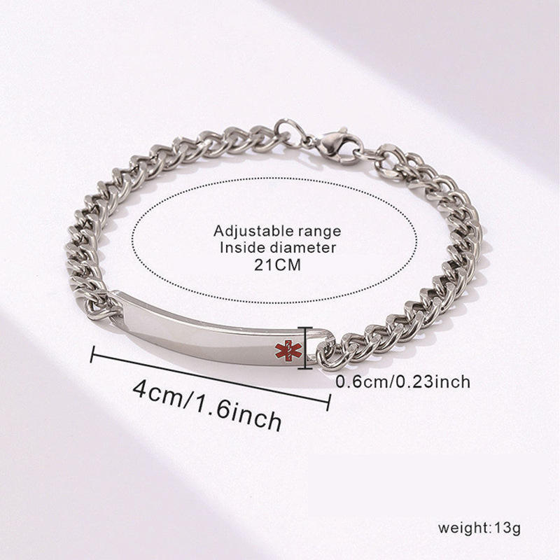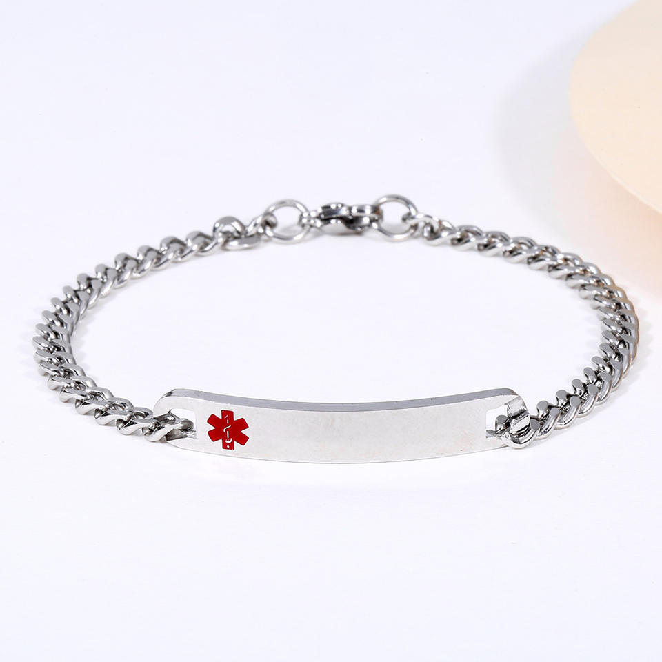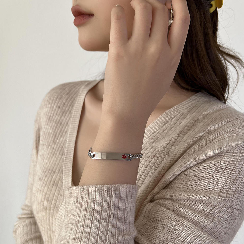 Pulsera de alerta médica personalizada al por mayor, brazalete de identificación de acero inoxidable en plata con símbolo de Cruz Roja, pulsera de moda.