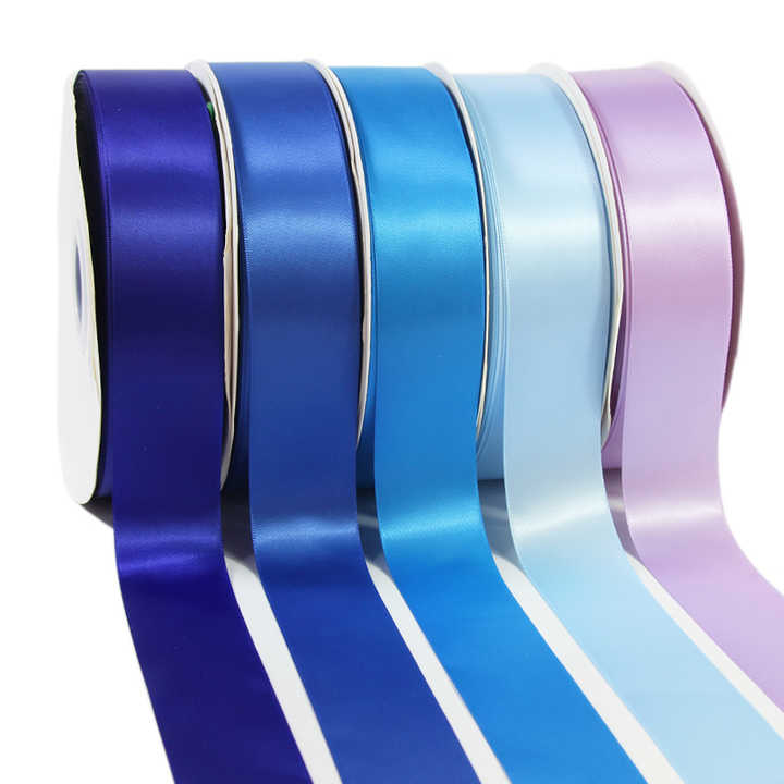 Cinta de satén de doble cara de poliéster azul al por mayor, rollo de tamaño 100, cinta de embalaje de regalo, decoración de lazo