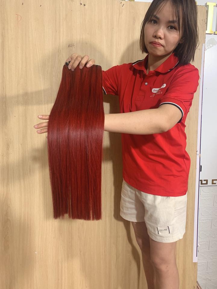 Venta al por mayor de cabello humano liso de hueso BundlesSuper doble dibujado cabello virgen color rojo Super doble dibujado cabello crudo
