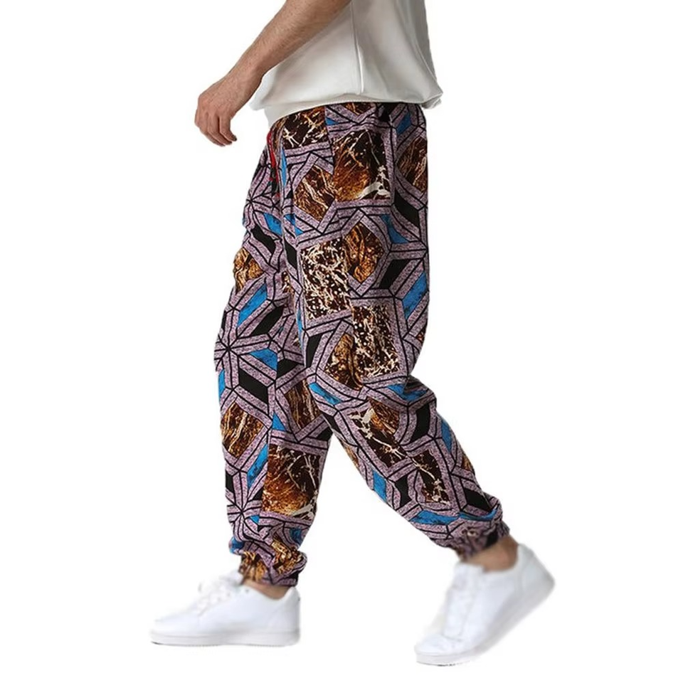 Pantalones estampados transpirables al por mayor, de secado rápido, personalizados, con estilo, de talla grande, pantalones de hombre lavados, transpirables y de ajuste cómodo