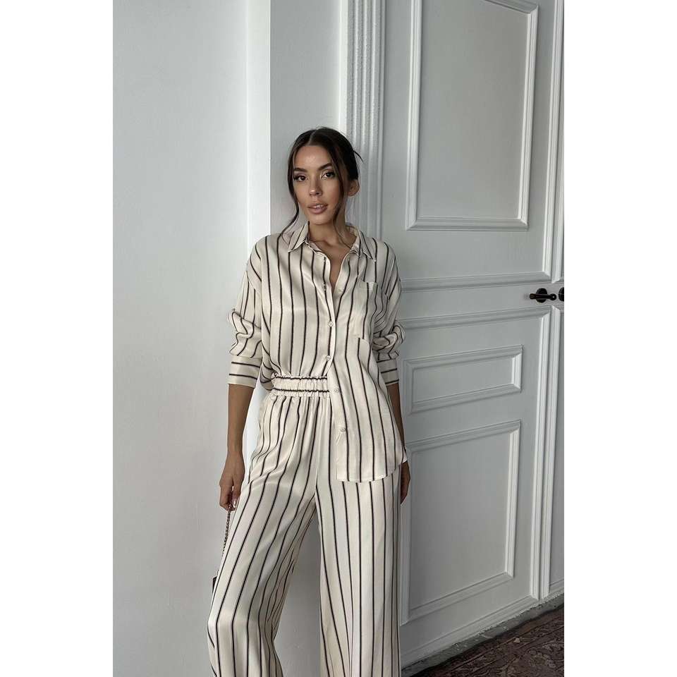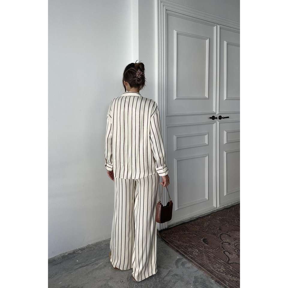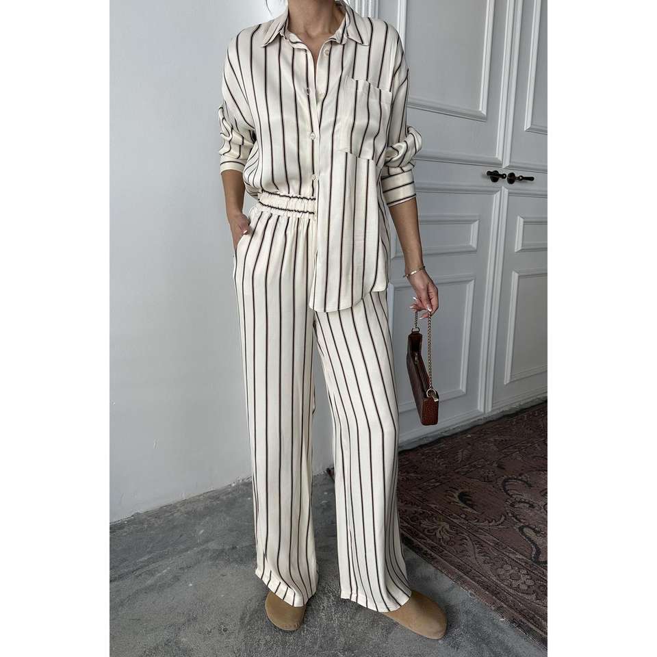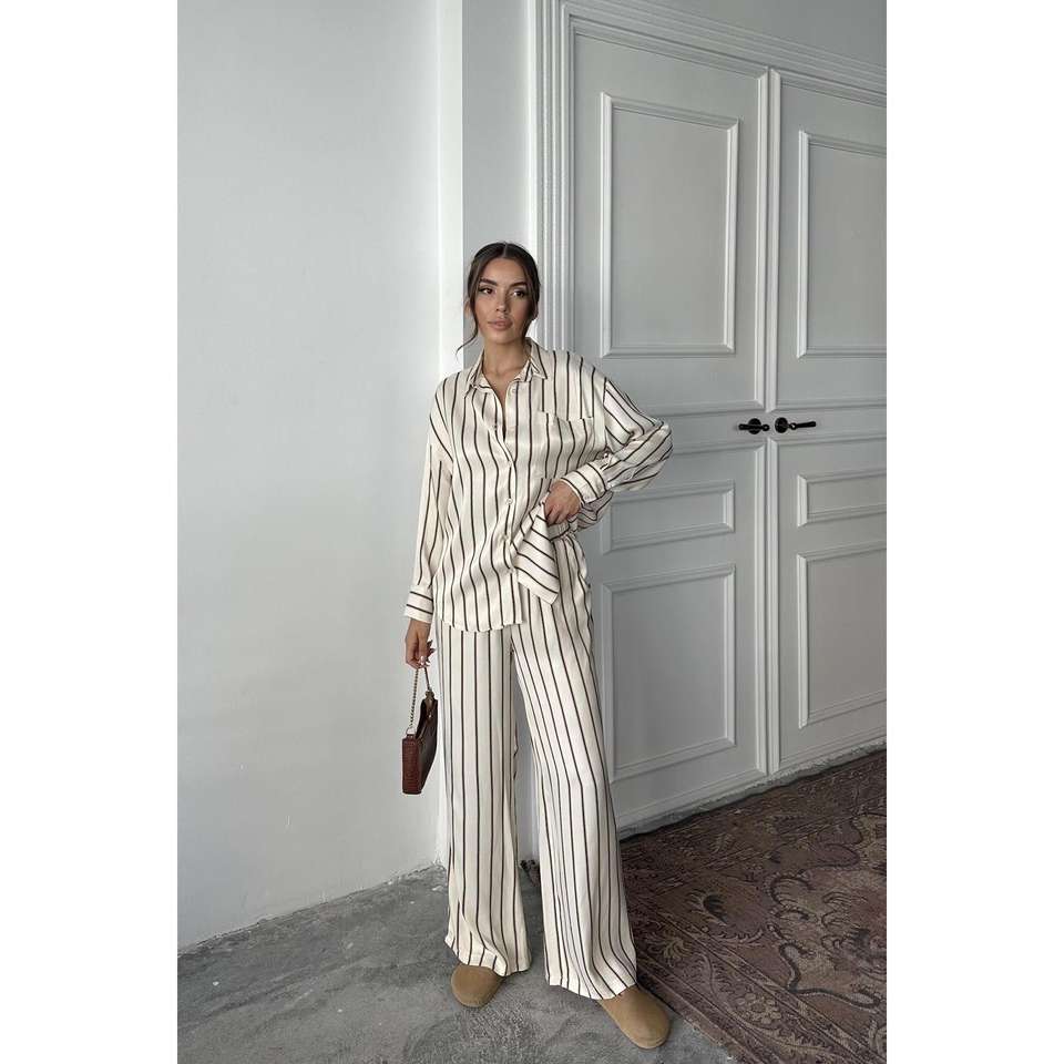 Al por mayor Conjunto de bata de satén a rayas marrones con logotipo personalizado, cintura elástica, transpirable, talla grande, jersey con estampado liso para invierno