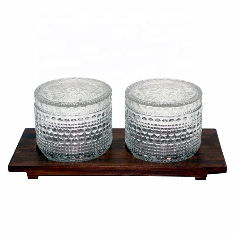 Juego de vajilla a granel con bandeja de madera, excelente 2 tarros de vidrio, plato de diseño clásico para servir mesa de cocina superior