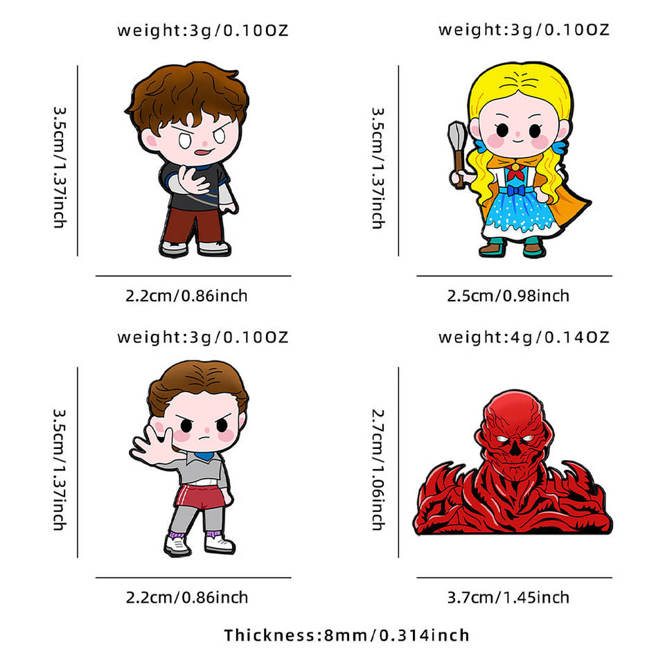 Venta al por mayor a granel directo de fábrica Pin esmaltado de metal de personaje de Stranger Things - Insignia personalizada OEM/ODM para merchandising de fans y regalo promocional