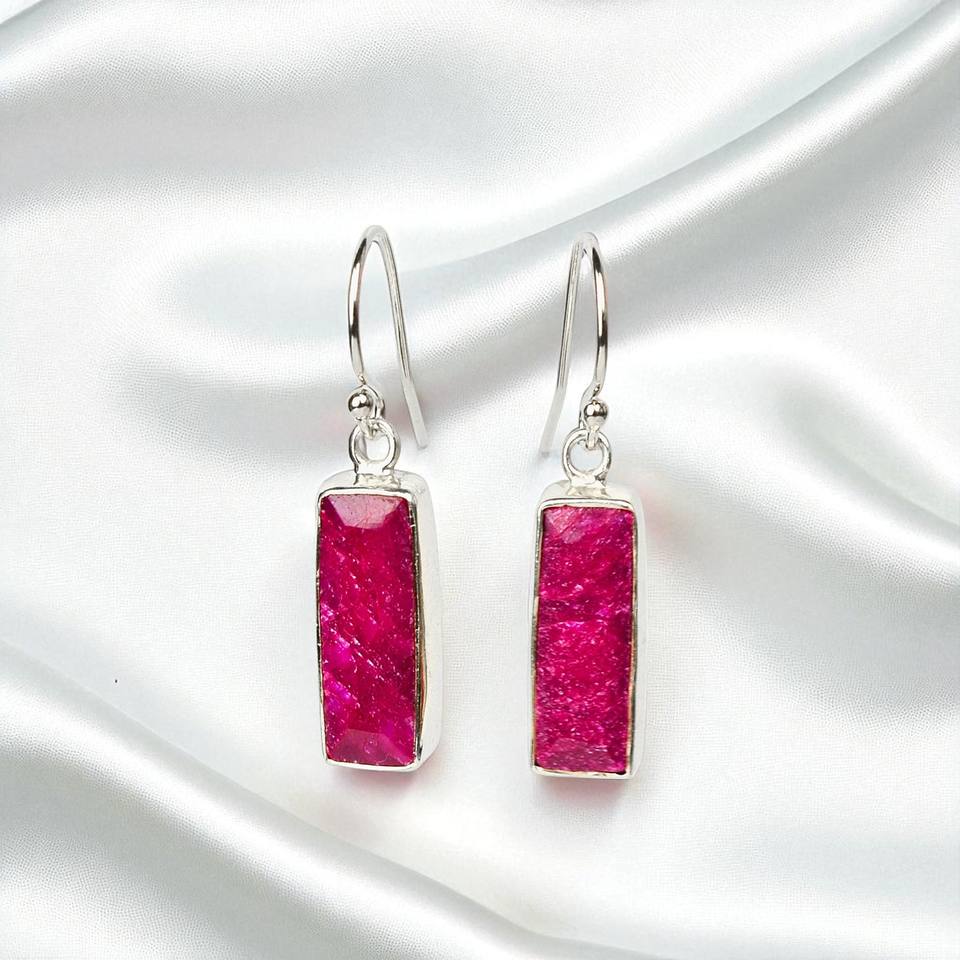 Pendientes de piedras preciosas de rubí con barra rectangular certificada S925 de moda a granel al por mayor, Plata de Ley 925 para mujer
