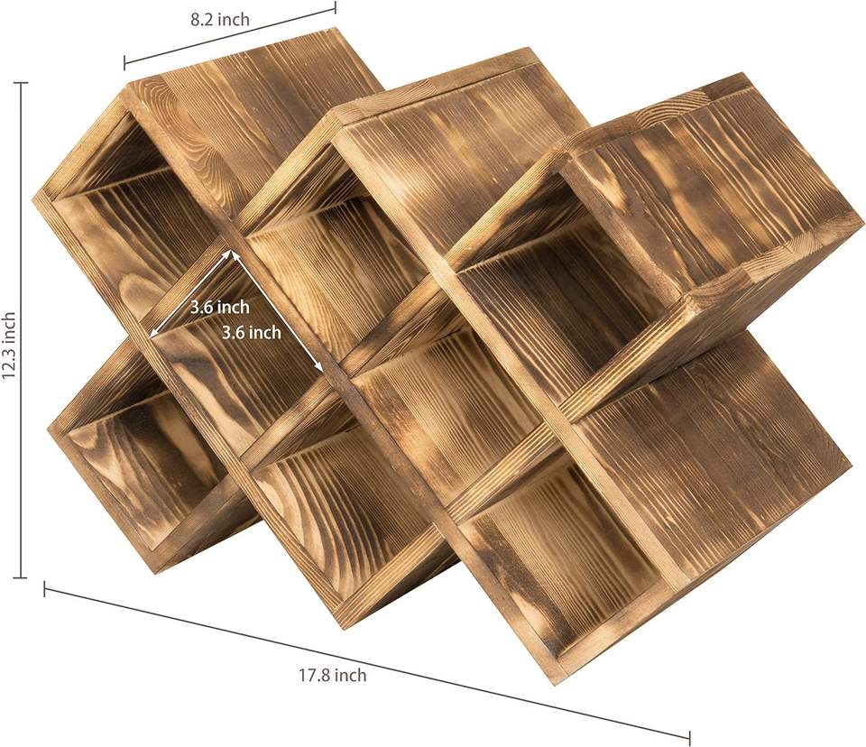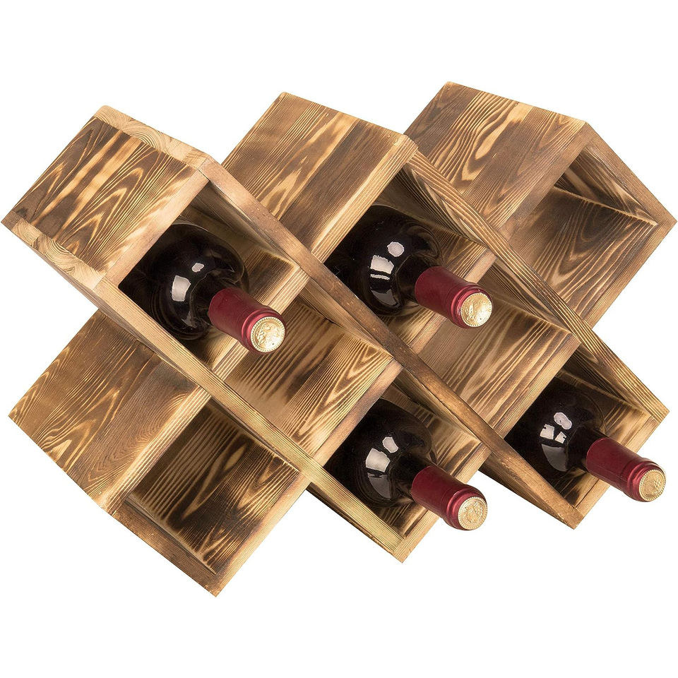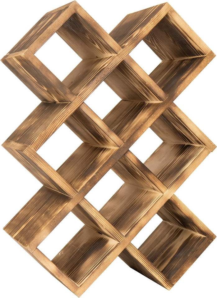 Botellero de encimera de madera quemada al por mayor, botellero de bodega montado en la pared grande de alta calidad para bebidas y cubos de hielo