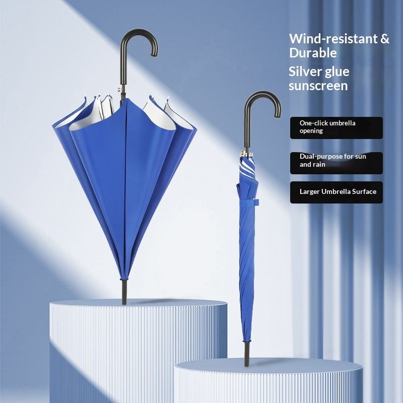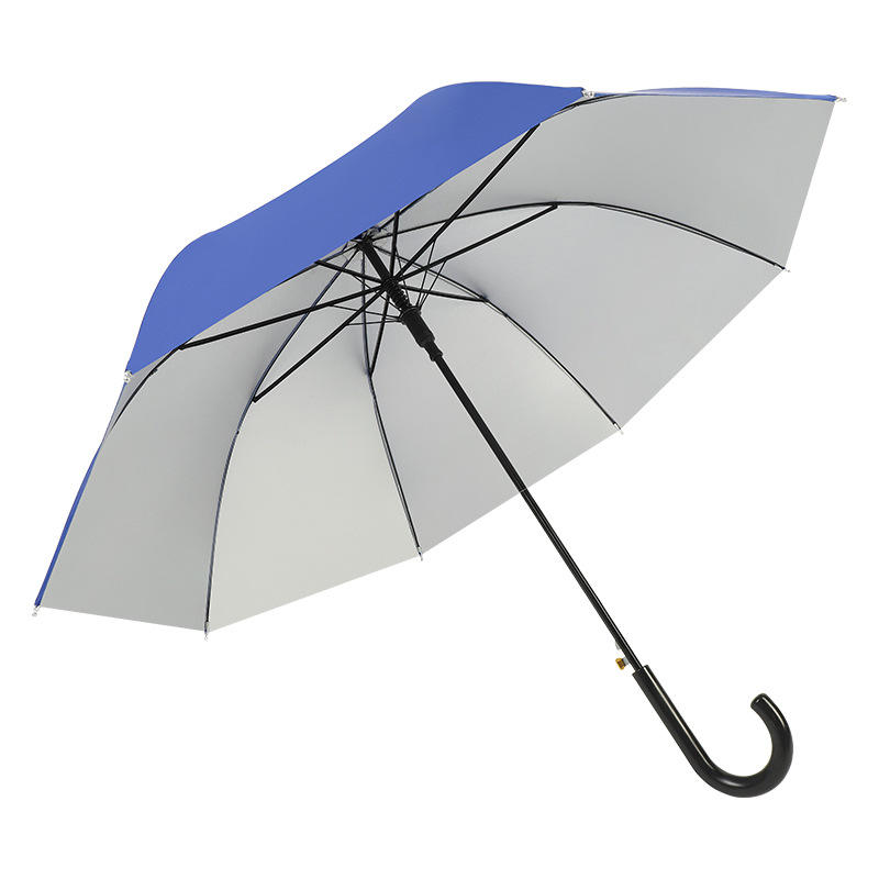 Paraguas publicitario de regalo de 22 pulgadas con mango curvo, semiautomático, de poliéster plateado, de hierro y plástico, para negocios al por mayor