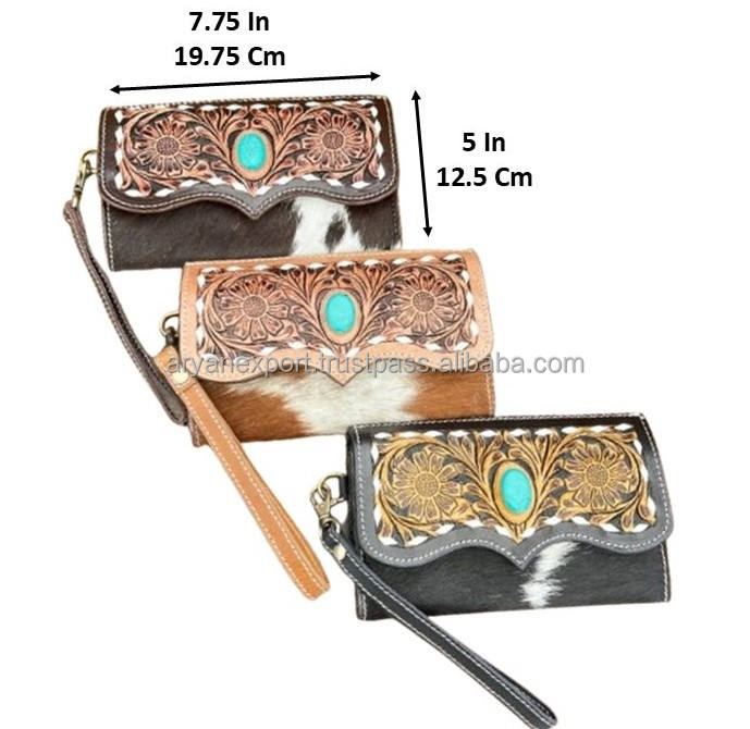 Nuevo Estilo, Cartera de Cuero Vacuno Hecha a Mano al por Mayor, Tarjetero con Correa para la Muñeca, Diseño Occidental para Mujer, Bolso de Mano Tipo Clutch