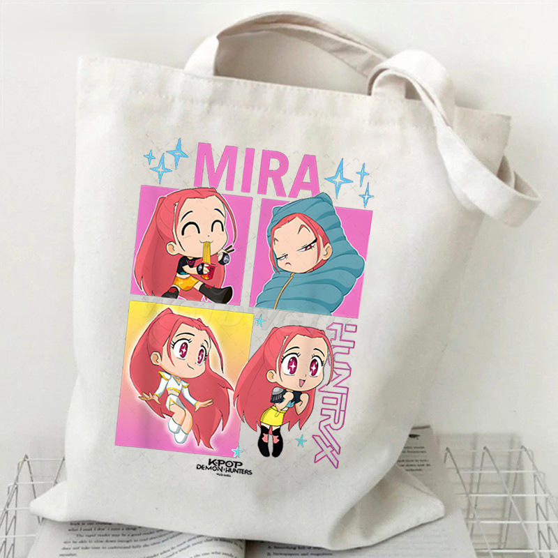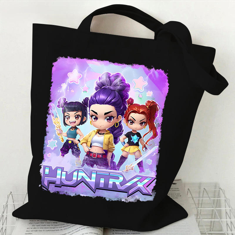 Bolsa de Mano de Lona de Algodón con Diseño de Dibujos Animados K-Pop Demon Hunters Huntrix, para Mujeres, Estudiantes y Chicas, Bolsos de Hombro Modernos Kpop, Venta al Por Mayor
