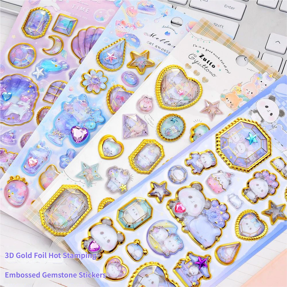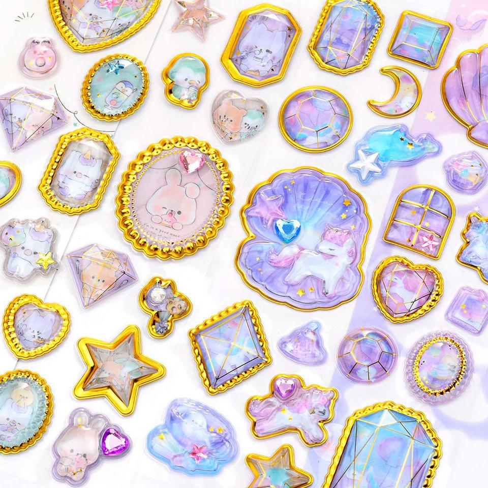Pegatinas de Caramelo con Relieve de Dibujos Animados al por Mayor, Patrón de Estrella 3D, Cristal PVC Impermeable, Kawaii, Divertidas, Lindas, Decorativas, para Regalo