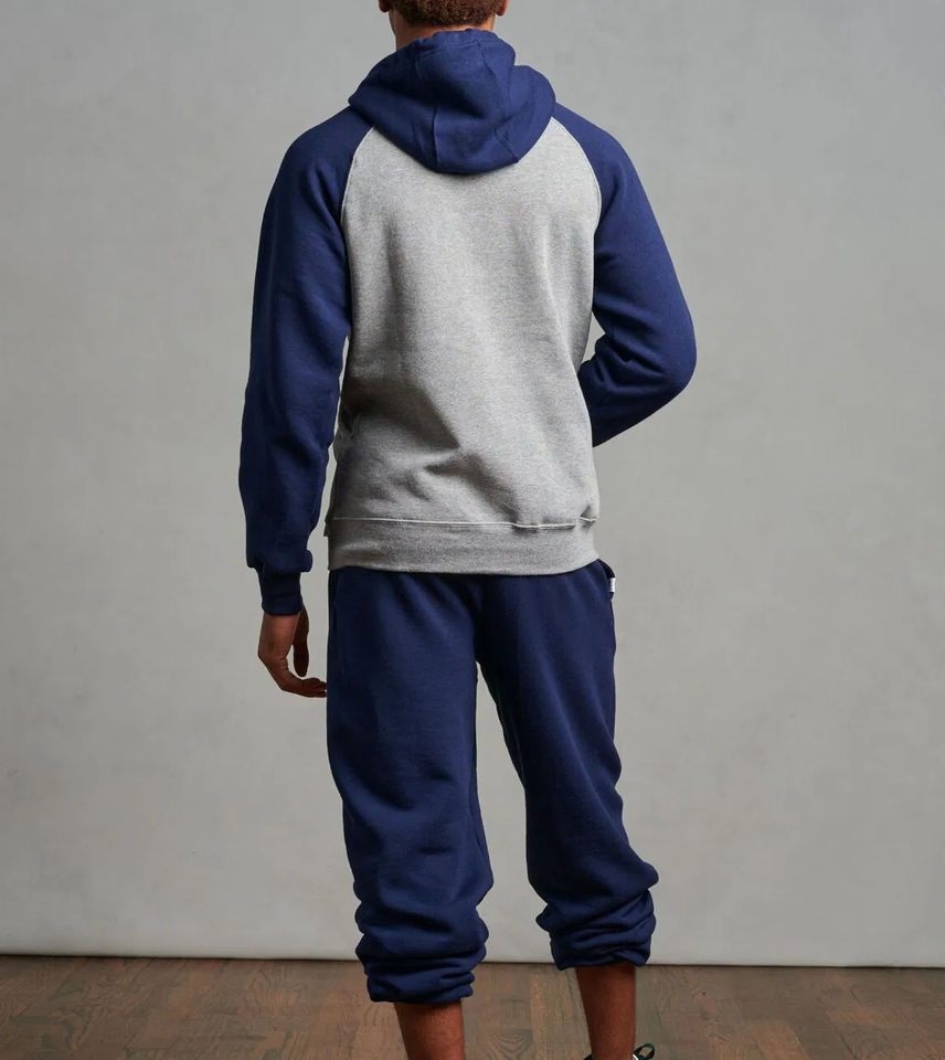 Casual de los hombres mangas raglán cadena pulóver con capucha personalizado de dos tonos de bloque Patchwork bordado Technics al por mayor para el otoño