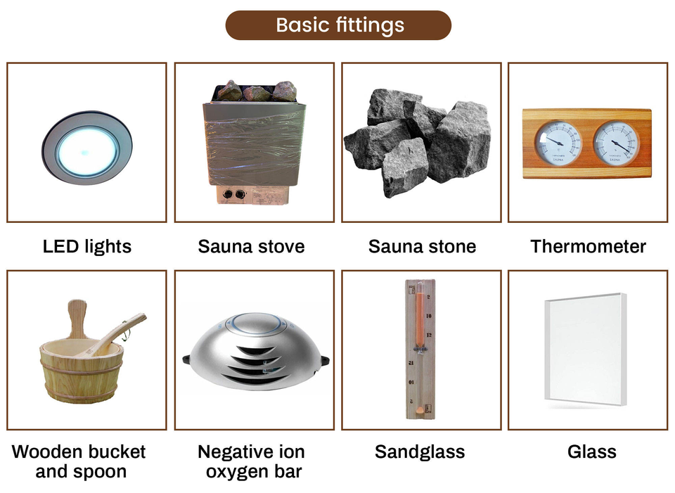 Accesorios:Panel de control, cuchara de madera, estufa de la sauna, etc
