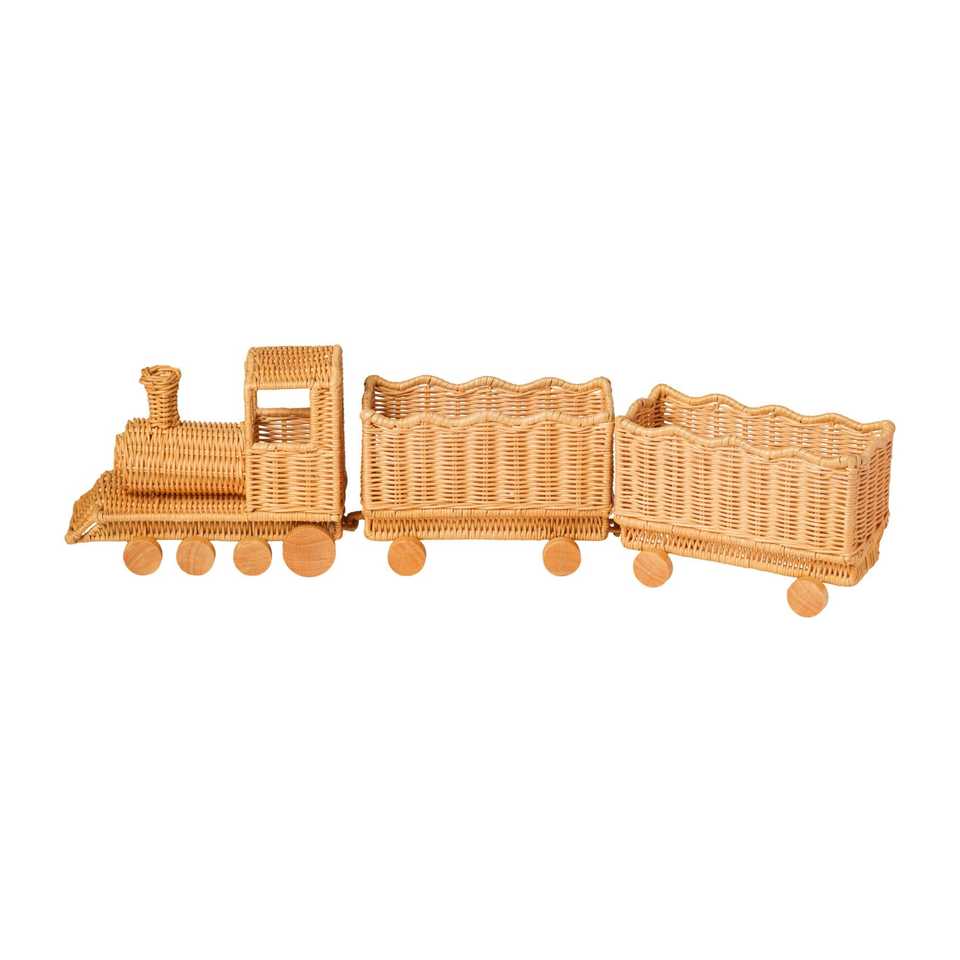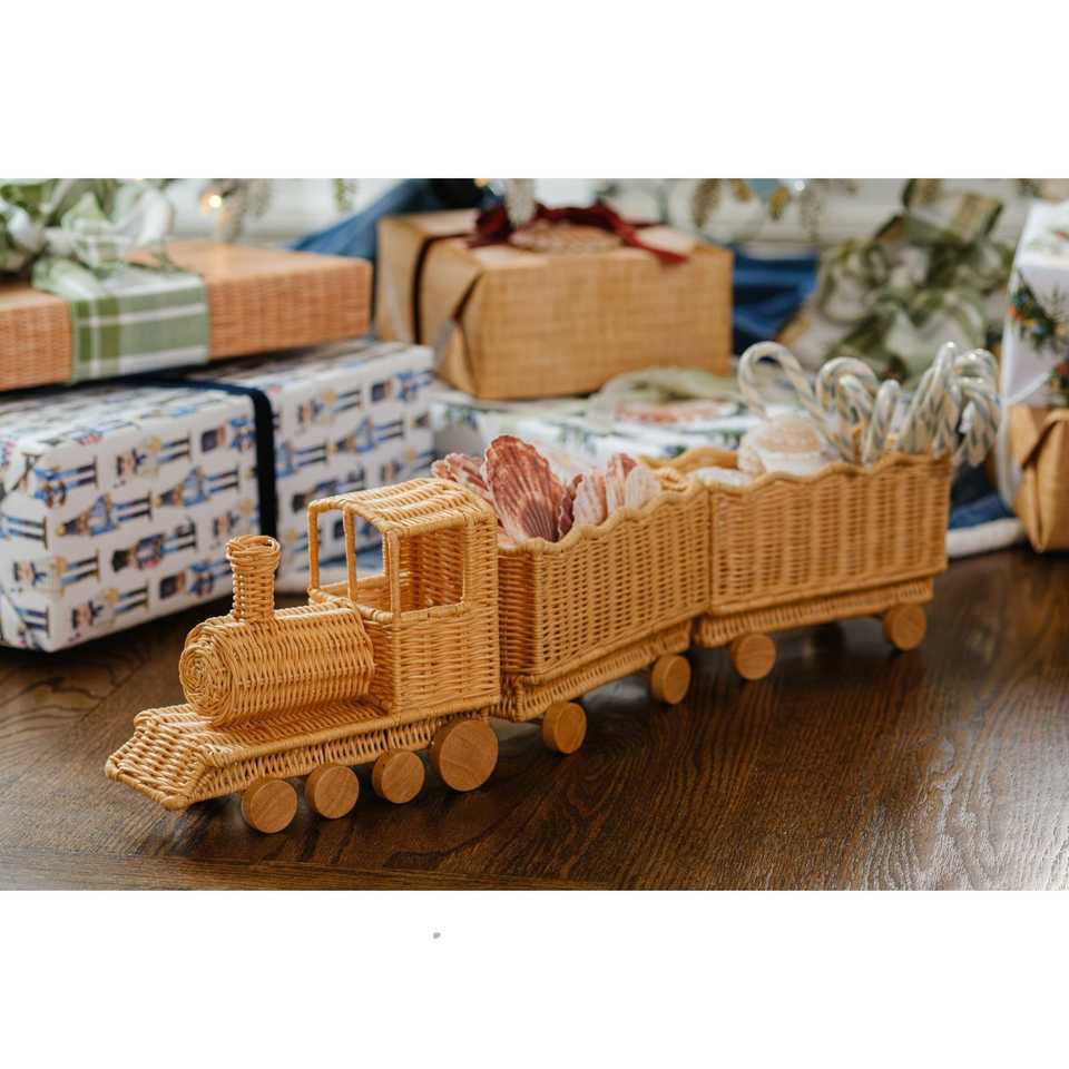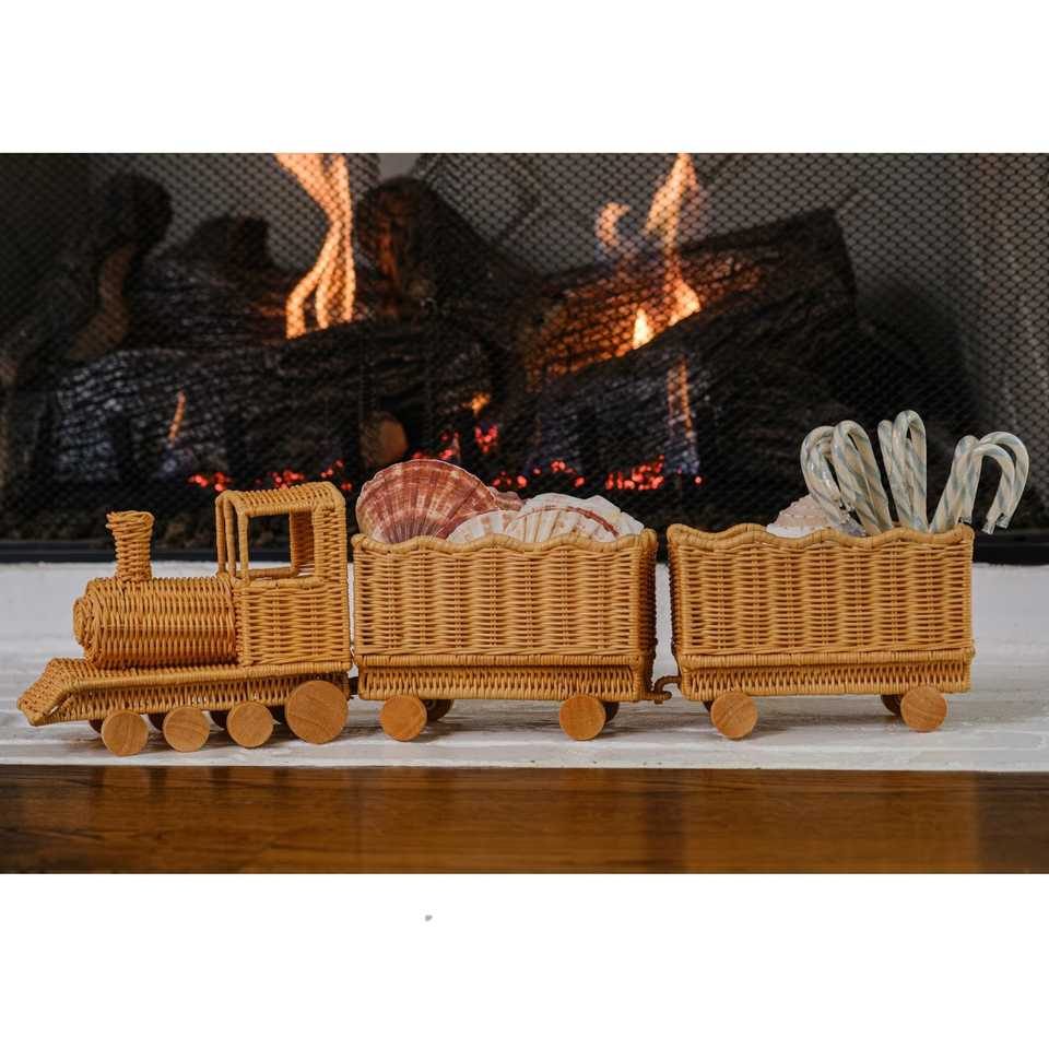 Juego de tren de mimbre encantador al por mayor, decoración de tren de mimbre tejido para mesa de comedor, restaurante y decoración de fiestas