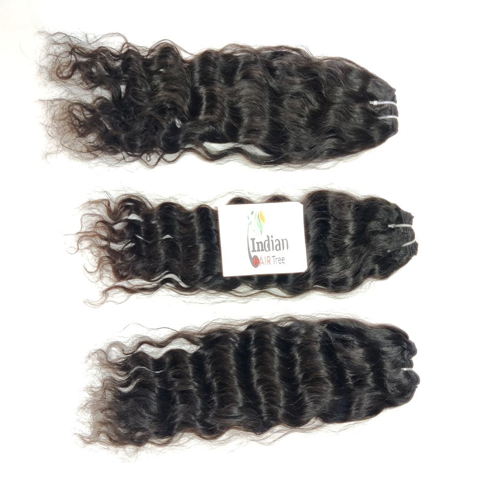 Venta al por mayor barato indio Remy Virgen cabello humano sin procesar un donante ondulado procesamiento químico ninguno tejido paquetes extensiones negras