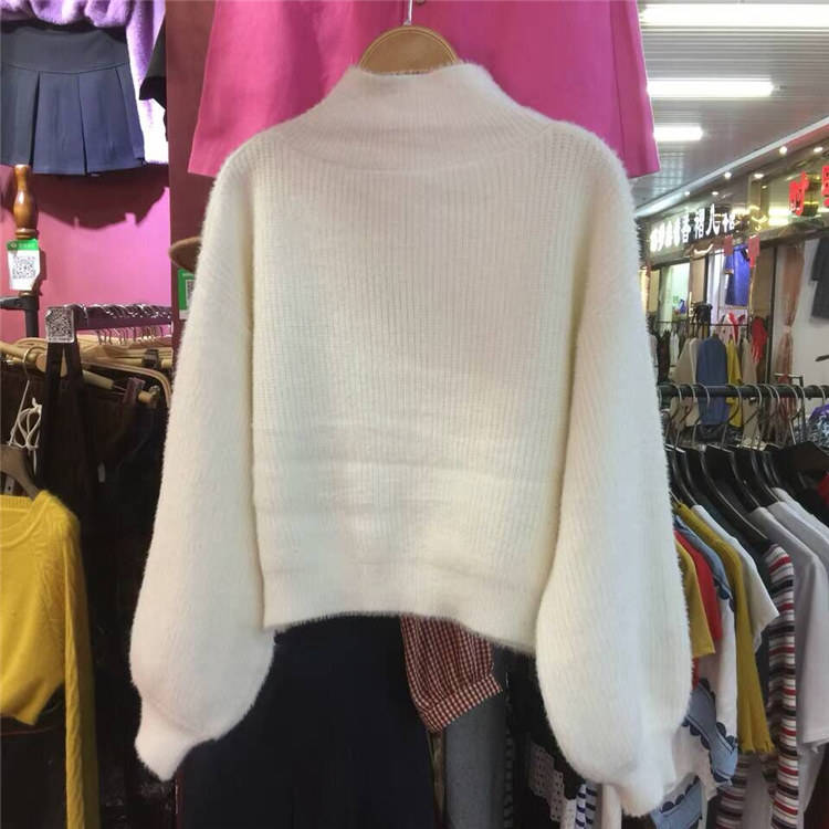 Suéteres cortos de mohair peludos baratos para mujer al por mayor, suéter informal básico en blanco grueso y acogedor de punto, suéter de cuello alto para mujer