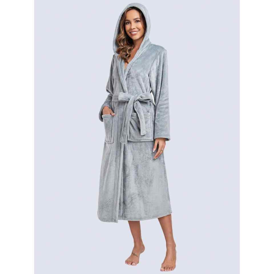 Albornoz de Felpa Barato al por Mayor, Almacén Local en EE. UU., Ropa de Dormir Sólida para Adultos, 3XL, Franela Gruesa, Cálido y Suave, Pijama con Capucha