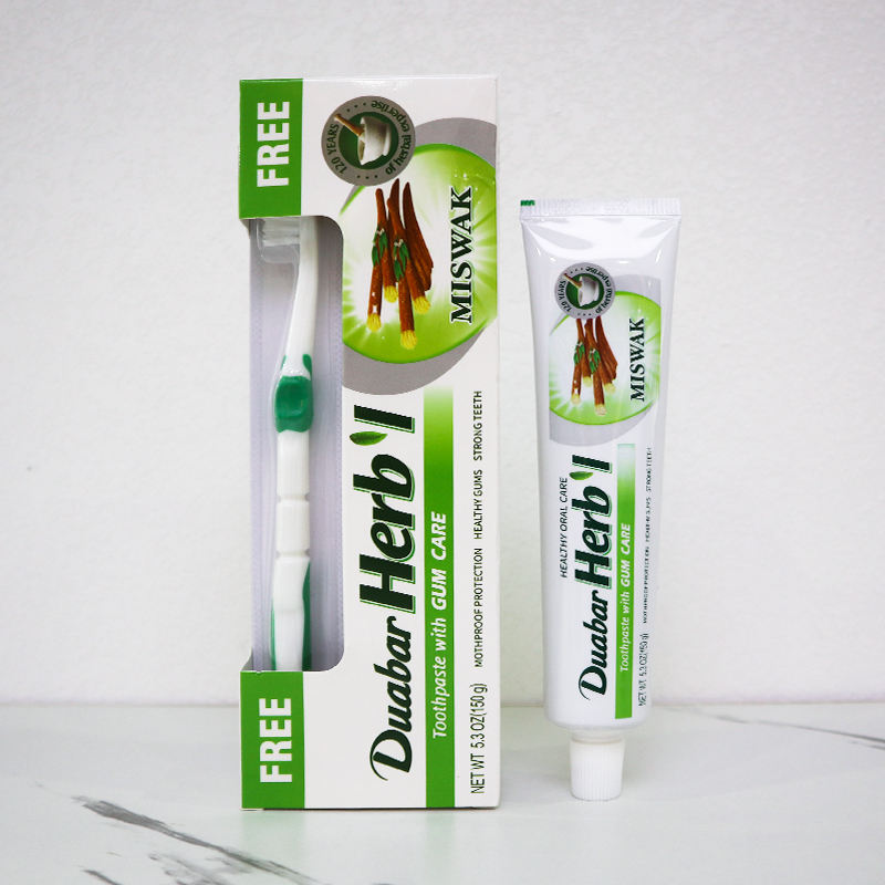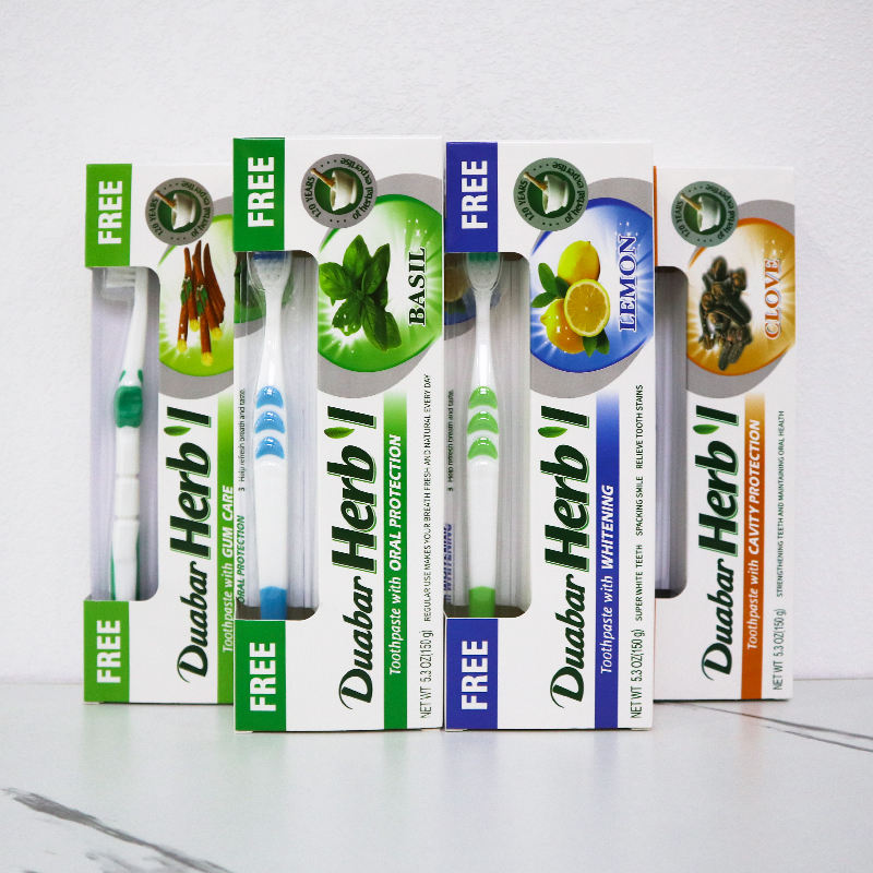Venta al por mayor precio barato 150g pasta de dientes con cepillo de dientes logotipo personalizado blanqueamiento de dientes pasta de dientes a base de hierbas