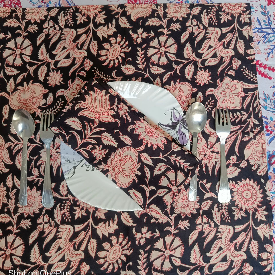 Venta al por mayor precio barato hecho a mano bloque impreso servilletas cubiertas de mesa de té juego de mesa de comedor conjunto de cubierta