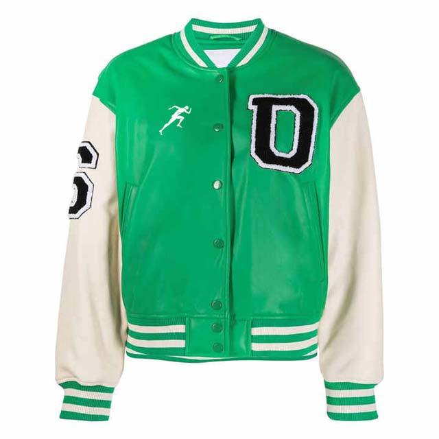 Chaquetas de béisbol de invierno de lana con manga de cuero transpirable liso con diseño de parche de logotipo de marca personalizado de color sólido a precio barato al por mayor