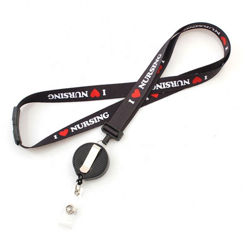 Cordón personalizado retráctil con logotipo de impresión barato al por mayor con soporte para tarjeta de identificación