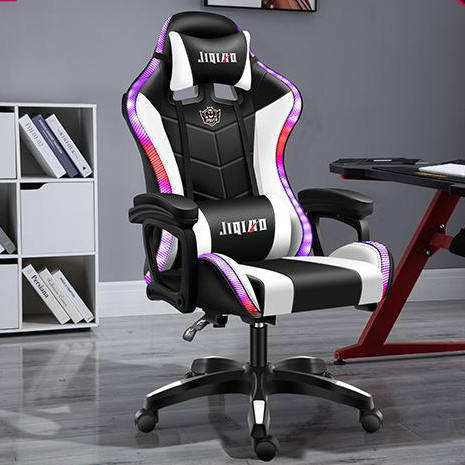 Silla Gamer de Piel Sintética PVC Barata al por Mayor con Luces LED, Silla de Juego RGB con Masaje, sin Reposapiés