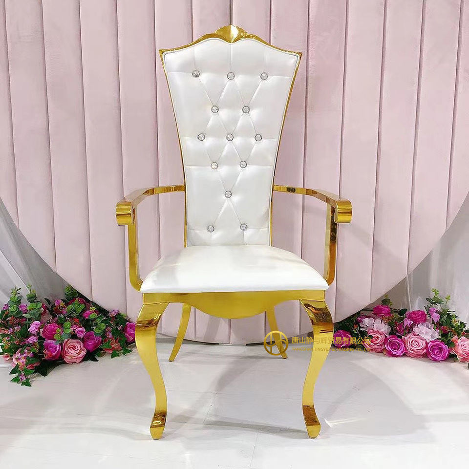 Venta al por mayor barato fiesta real alquiler evento banquete usado oro Acero inoxidable respaldo alto VIP boda decoración trono reposabrazos silla