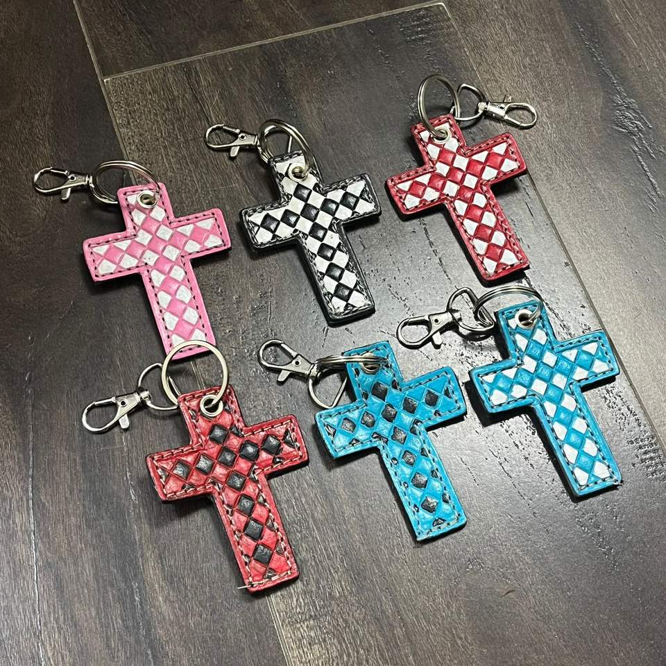 Nombre del Producto:Llavero de cuero repujado a mano con diseño a cuadros