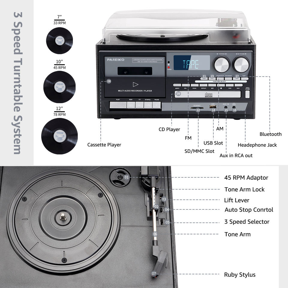 Velocidad:Reproductor de tocadiscos de velocidad 33.3/45/78 RPM