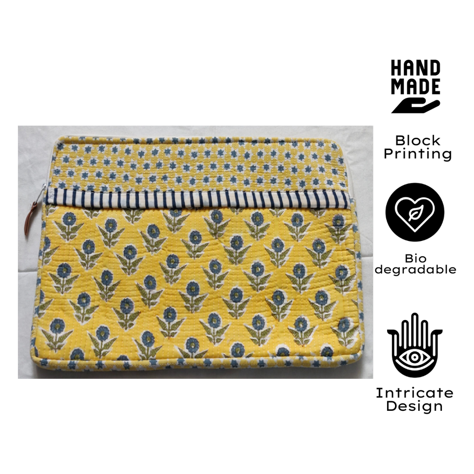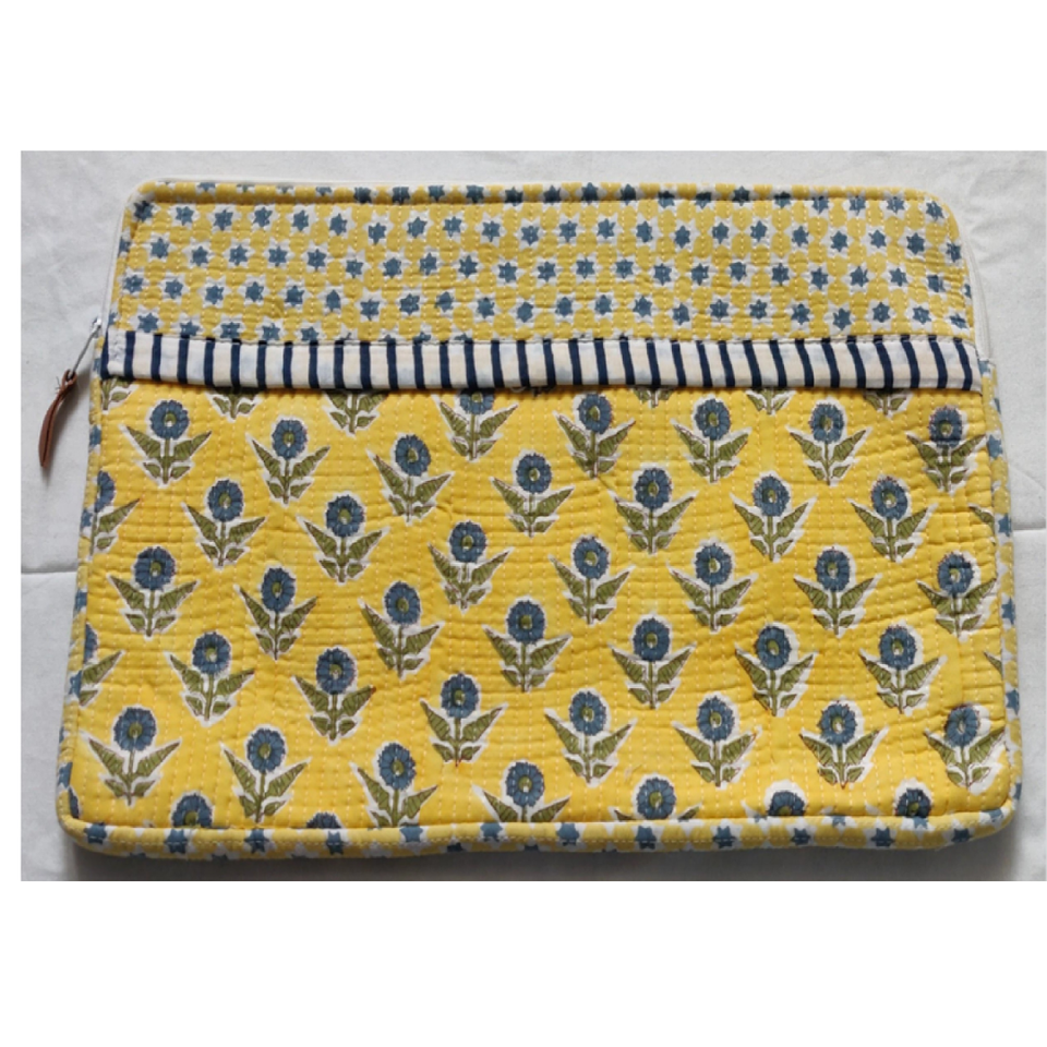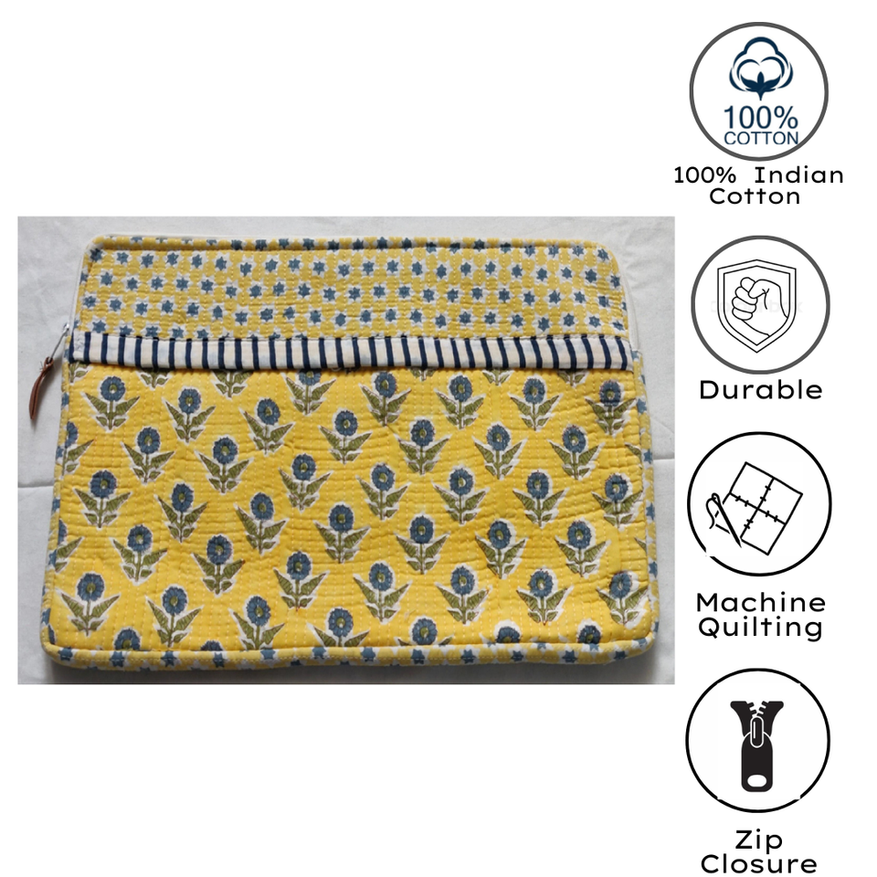 Funda para Portátil Clásica, Suave, Estampada a Mano con Diseño Rajasthani, Acolchada, con Múltiples Bolsillos y Cierre, de Algodón Puro, Ecológica, al por Mayor