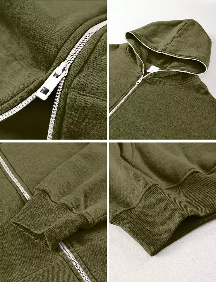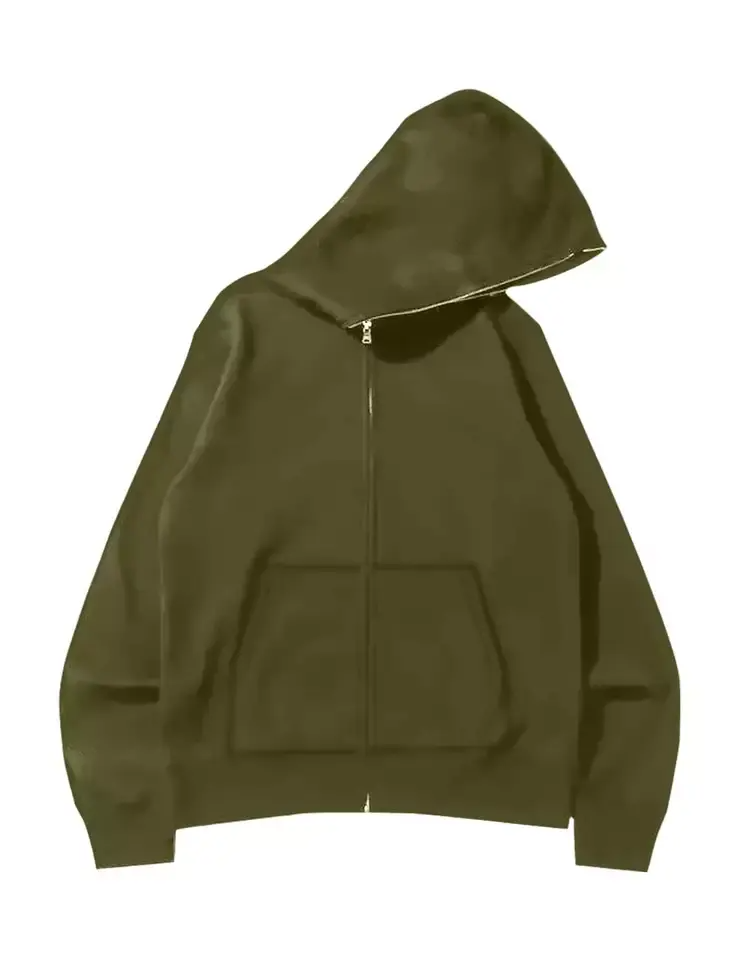 Ropa al por mayor Sudaderas con capucha verdes con cremallera en blanco y Sudadera con cremallera completa impresa personalizada