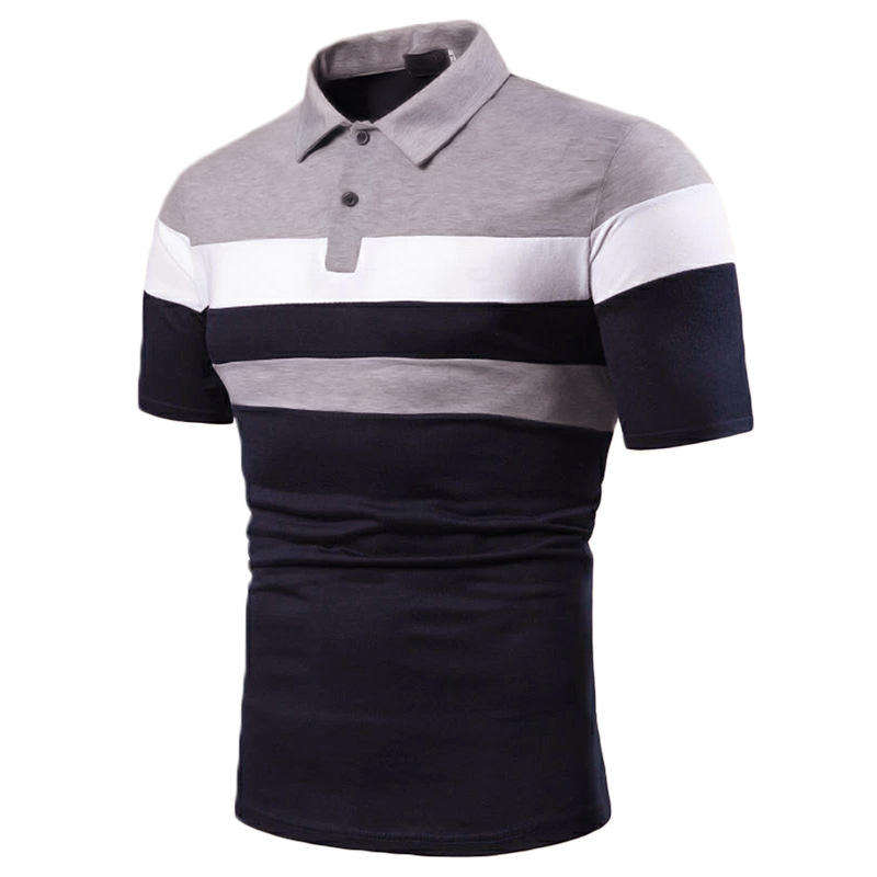 Venta al por mayor Color Patchwork diseño verano hombres Casual solapa manga corta algodón camiseta Golf Polo hombres rayas Polo