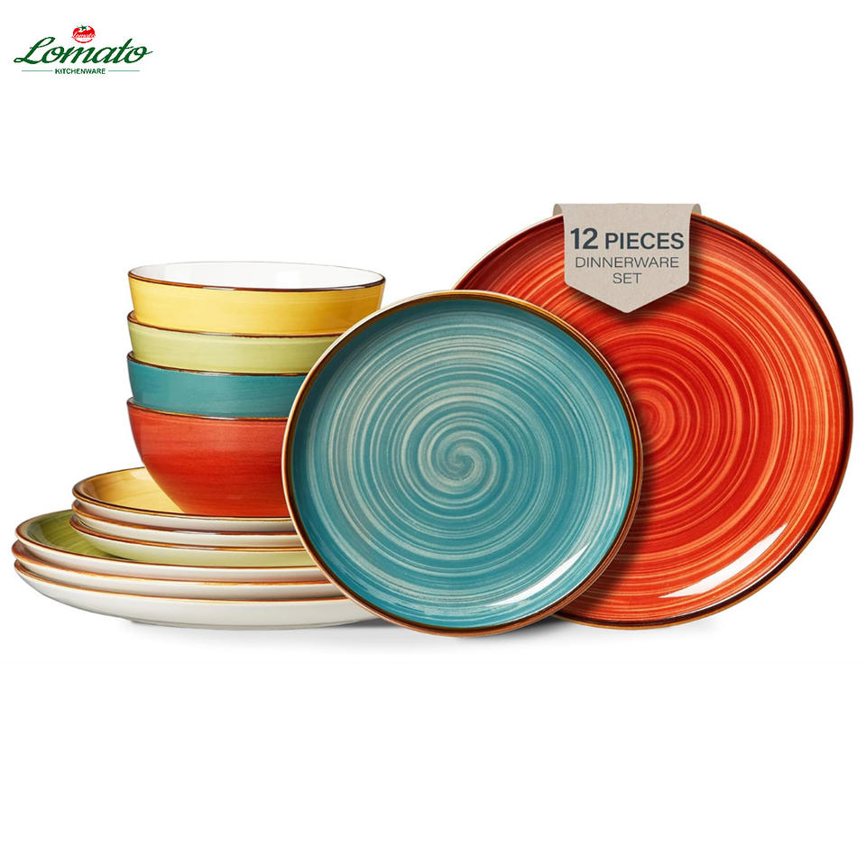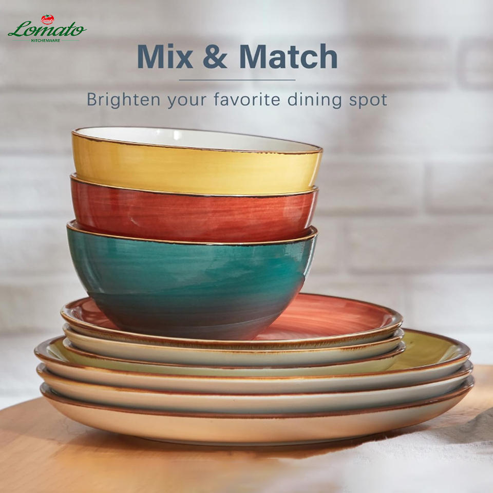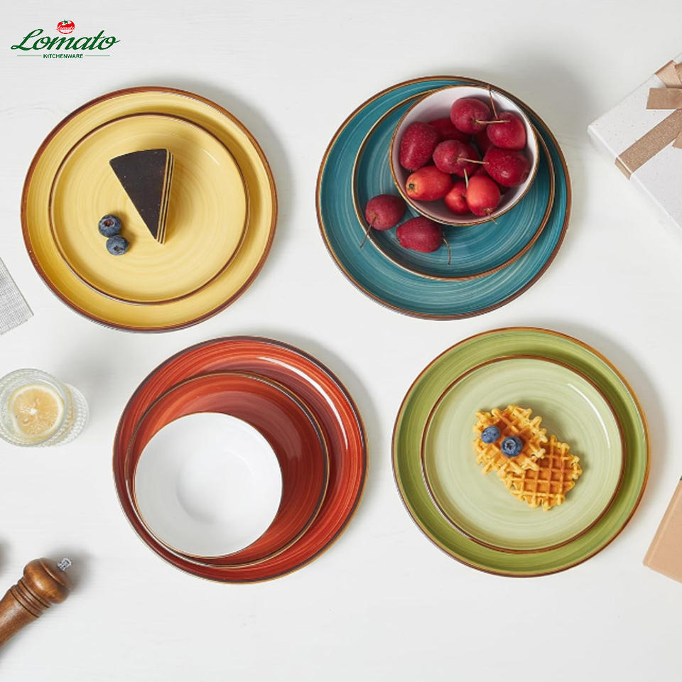 Juego de Vajilla de Cerámica Colorida al por Mayor, Platos y Tazones de Gres, Vajilla de Porcelana Duradera para Restaurante, Venta en Línea