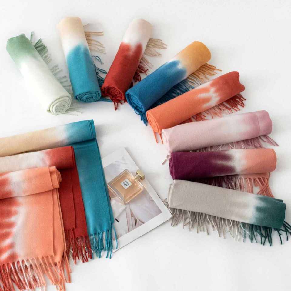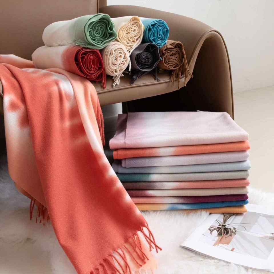 Bufandas Largas de Cachemira para Mujer, Gruesas, Cálidas, con Degradado de Color, para Invierno, Venta al Por Mayor