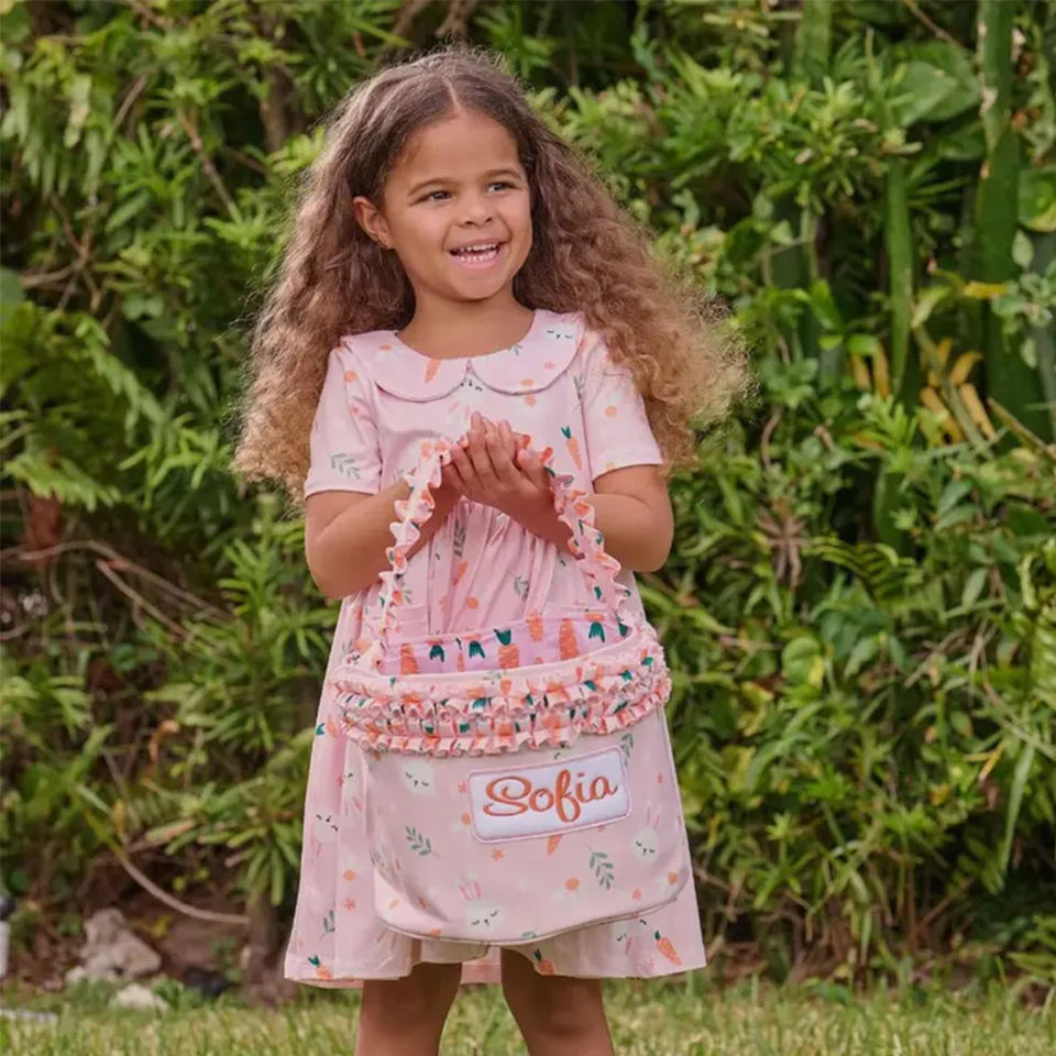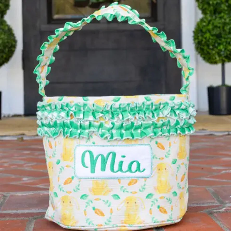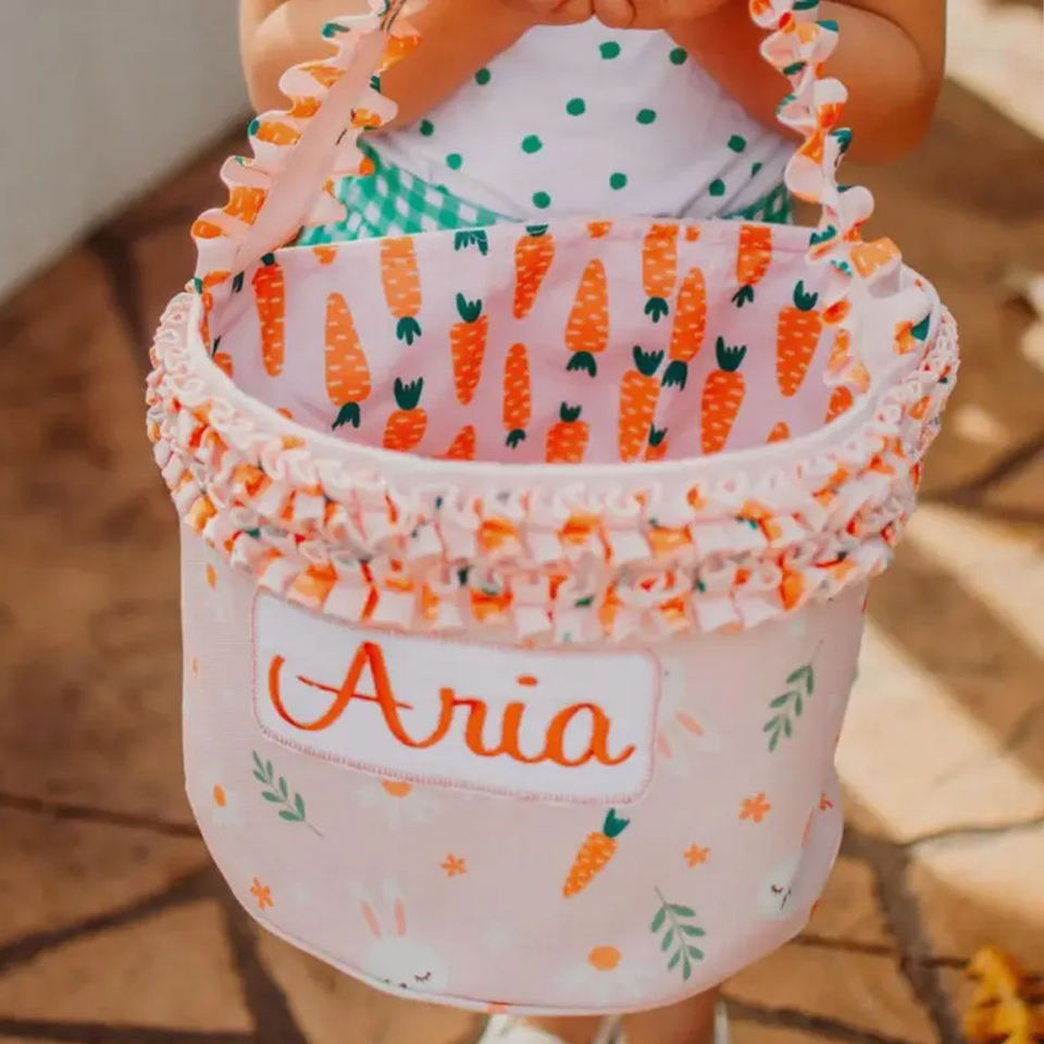 Cestas de Pascua con Volantes Coloridos al por Mayor, Cesta de Conejito Bordado para la Búsqueda de Huevos de Pascua, Decoración de Pascua con Zanahoria y Conejo