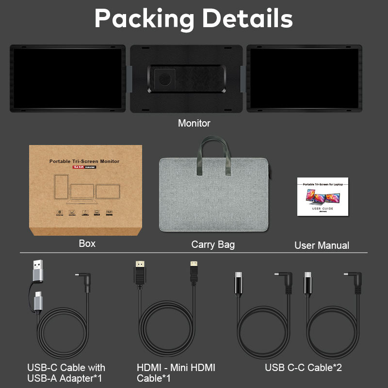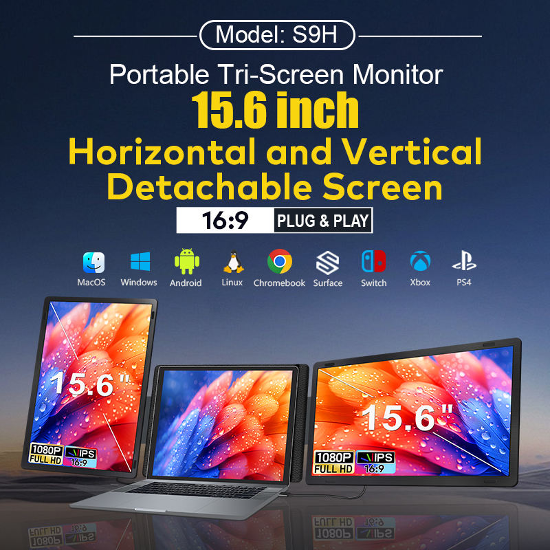 Monitor Portátil Triple con Pantalla Dividida para PC, Extensor de Pantalla para Laptop de 15.6 Pulgadas, Doble 1920*1080 IPS FHD LCD, Tipo C