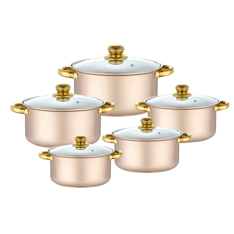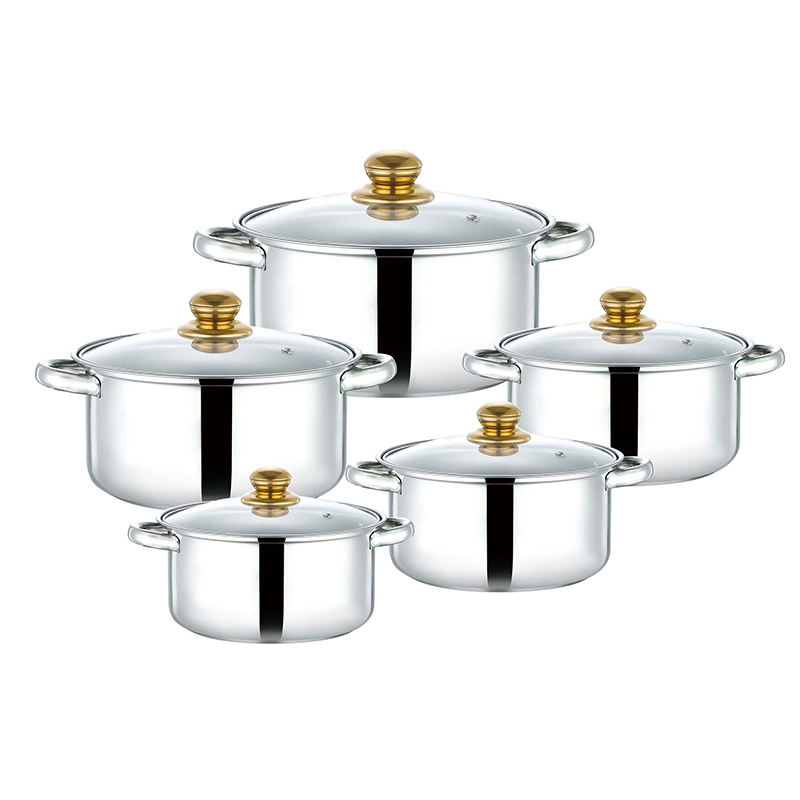 Venta al por mayor juego de cocina 10 piezas, ollas de acero inoxidable, olla grande y cacerolas, batería de cocina compatible con inducción