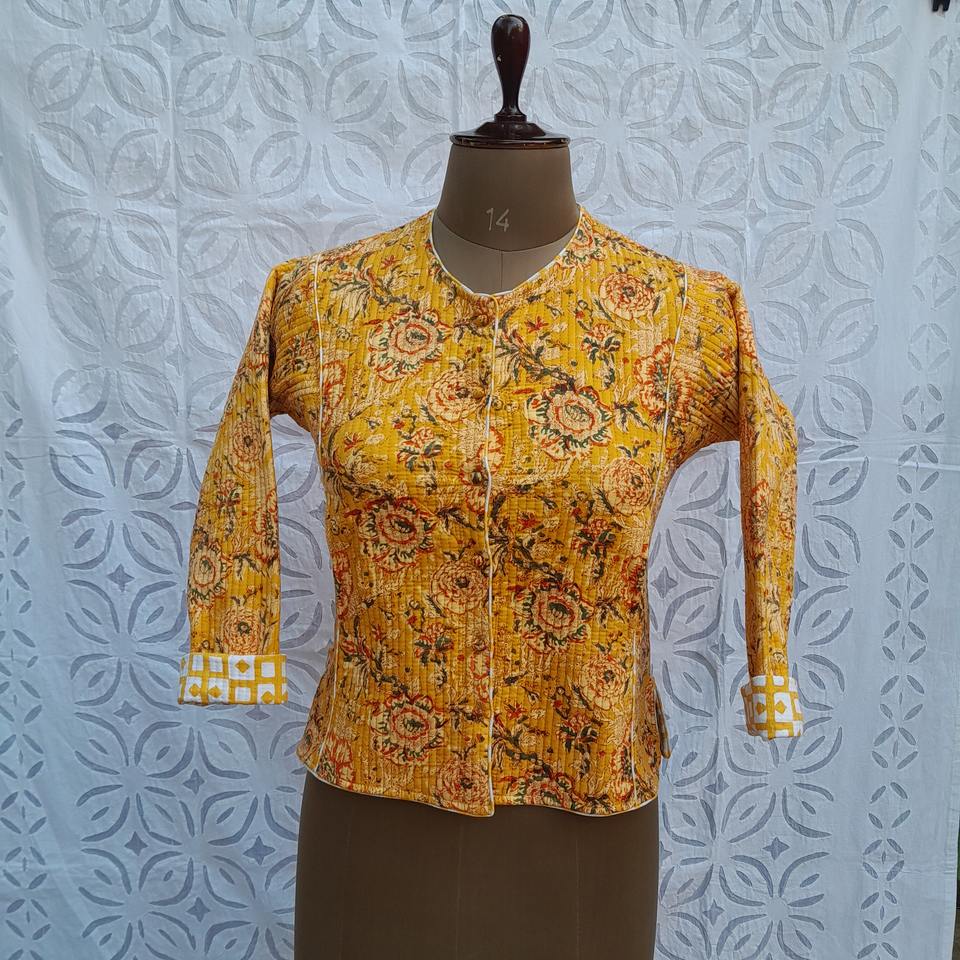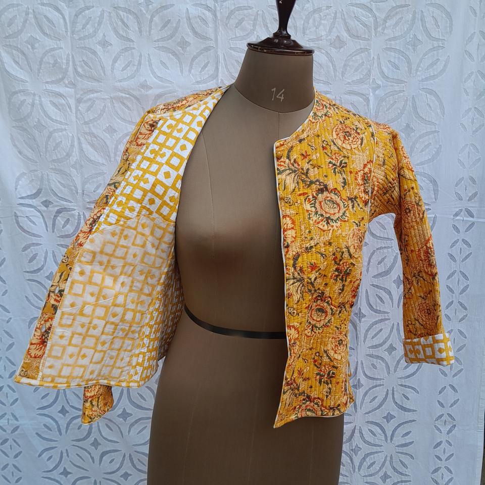 Nombre del producto:Chaqueta Acolchada de Algodón Estampada a Mano con Bloques para Mujer
